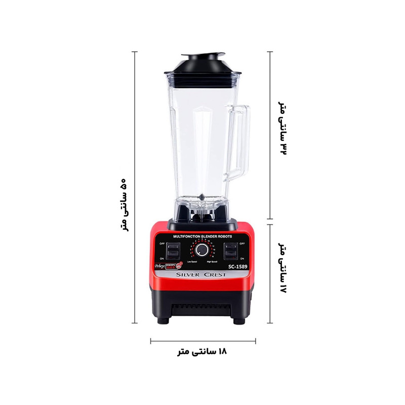 مخلوط کن سیلورکرست مدل SC-1589 از بهترین و پرقدرت ترین مخلوط کن های موجود در بازار می باشد. مخلوط کن با نام بلندر هم شناخته می شود. مخلوط کن سیلور کرست شامل یک پارچ هست که دارای 2 تیغه فولادی که شامل 6 پره می باشد. از بلندر معمولا برای تهیه نوشیدنی ها استفاده میشود و معمولا باید مقداری مایع به همراه میوه و یخ نیز در مخلوط کن ریخته شود. همچنین از مخلوط کن می توان برای میکس و له و یکنواخت کردن همه ی مواد استفاده کرد.مخلوط کن سیلور کرست جهت خرد کردن میوه، سبزیجات، آجیل، یخ، در چند ثانیه است. موتور قوی تایمر دار با عملکرد بالا مناسب برای آبمیوه فروشی، کافی شاپ، کافه ها ، سبزیجات خرد شده و تهیه اسموتی یخ زده در خانه استفاده شود. این مخلوط کن دارای تیغه های با دوام است که توانایی بالا در جهت هم زدن میوه های درشت و سفت را دارد.این مخلوط کن بهترین و جذابترین پوره یخ را ایجاد میکند. درب این مخلوط کن سیلورکرست مدل SC-1589 دارای دریچه شکرپاش است و امکان اضافه کردن شکر و یا دیگر مواد را، در حین کار با دستگاه ممکن می سازد. این دستگاه به شما این اجازه رو میده که از گزینه “پالس” استفاده کنید. به این مفهوم که مواد جامد رو در حد مورد نیاز خرد و یا پودر میکنید. با پالس زدن شما میزان خورد کردن مواد رو تحت کنترل دارید و یا اینکه مواد نیمه جامد رو در حد مورد نیاز پوره و یا له میکنید. مخلوط کن سیلور کرست SC-1589 یک دستگاه چند منظوره با قابلیت آسیاب و مخلوط کن می باشد که قابلیت آسیاب و مخلوط کردن انواع مواد غذایی قابل خرد شدن اعم از سبزیجات، میوه، ادویه و… را دارد. این دستگاه به یک موتور قدرتمند با توان بالا مجهز است که قابلیت چرخش با سرعت 32000 دور در دقیقه را دارد که به آسانی و در کمترین زمان مواد مورد نطر را مخلوط کرده و آن را برای شما آماده می کند. مدل 1589 قابلیت تنظیم سرعت را دارد و با استفاده از دکمه گرداننده ای که بر روی دستگاه تعبیه شده بسته به نوع مواد غذایی می توانید سرعت آن را تنظیم کنید و همچنین می توانید سرعت موتور را بر روی دور آهسته و یا دورسرعت بالا قرار دهید. مخلوط کن سیلور کرست 1589 دارای تیغه هایی از جنس استیل ضد زنگ است که بسیار محکم و با دوام طراحی شده و حتی قابلیت خرد کردن یخ را نیز دارد. جنس کاسه مخلوط کن از شیشه پلی کربنات ساخته شده
