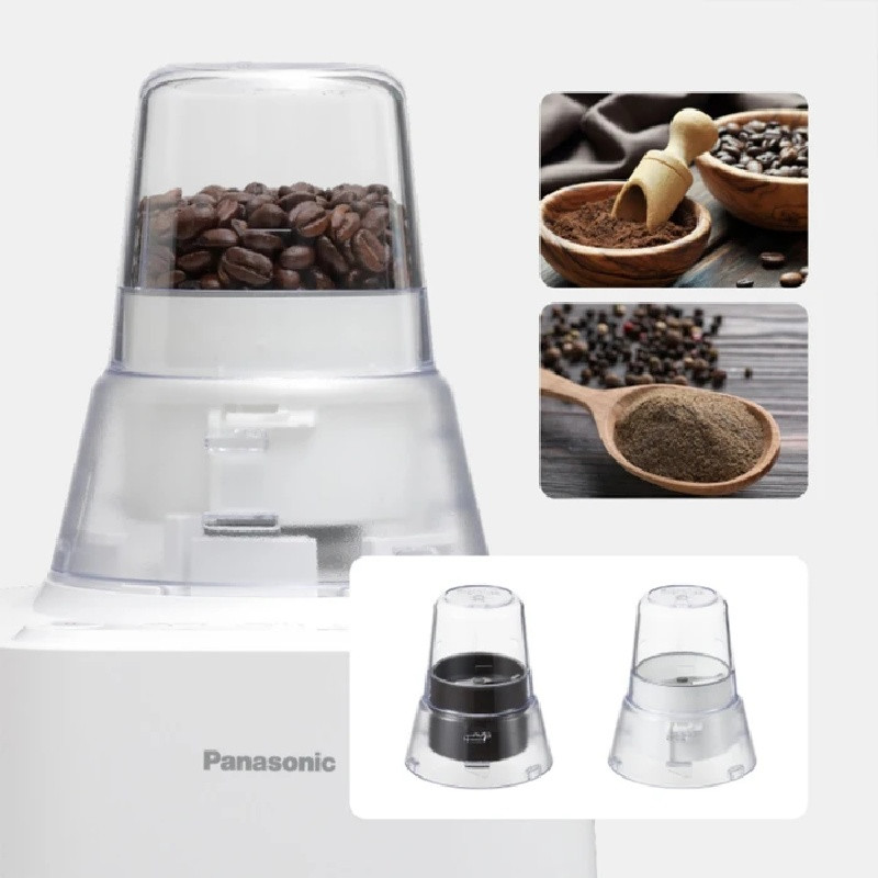 مخلوط کن پاناسونیک مدل MX-MG5421 دو منظوره بوده و علاوه بر له کردن و ترکیب مواد خوراکی به کمک دو سری آسیاب که همراه دستگاه ارائه شده قادر است آجیل و مغزیجات، دانه های قهوه، سنجد، فلفل سیاه، سماق، چوب دارچین و انواع ادویه و داروهای گیاهی را به سرعت پودر و ریز کند.