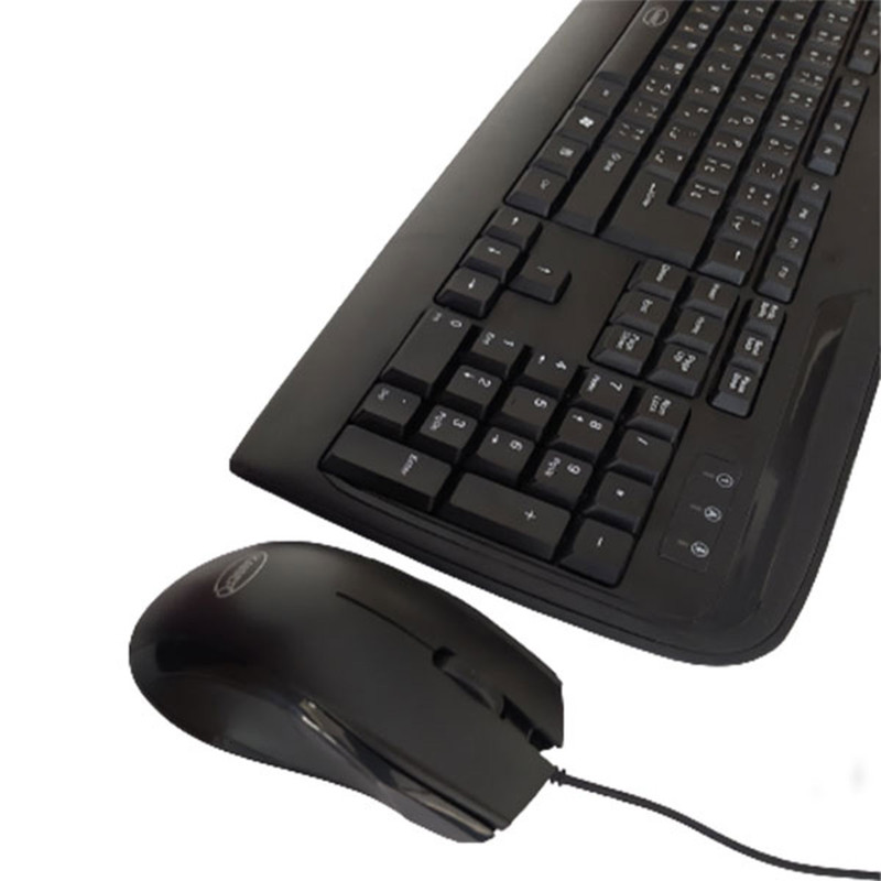 ماوس این مجموعه با سیمی به طول یک متر، 2 کلید اصلی و یک اسکرول نرم، حسگر اپتیکال دارای قابلیت حرکت روان و سریع روی بیشتر سطوح با ضربه پذیر بالا و دقت 1000DPI از مشخصه های آن میباشد.