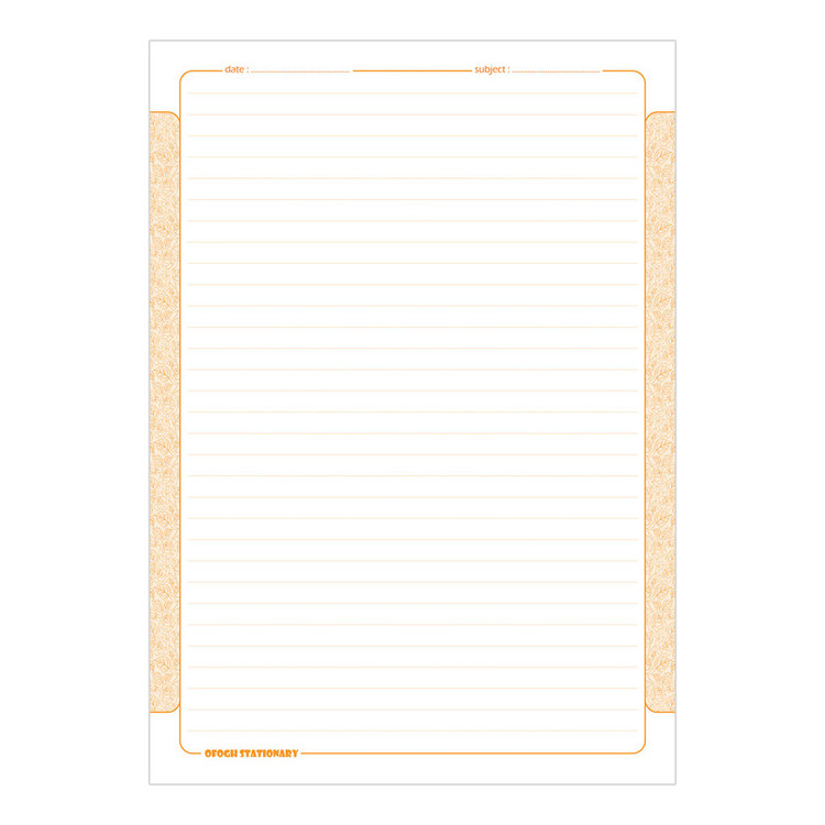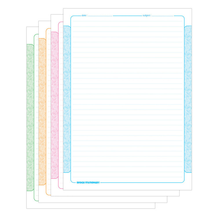 بسته 100 عددی کاغذ خط دار با چاپ دو رو به اندازه استاندارد A4 دارای خطوطی با فواصل استاندارد در چهار رنگ ملایم بوده که مناسب برای نوشتن است. ظاهر این نوع از کاغذ A4 خط دار ساده بوده و فاقد سوراخهایی در کنار آن است. این نوع از کاغذ به کاغذ امتحانی یا کاغذ املا نیز معروف است که برای گرفتن آزمون از دانش آموزان دبستانی و به منظور جزوه نویسی دانشجویان بسیار مناسب است. جنس مرغوب این نوع از کاغذ باعث میشود تا به راحتی پاره نشود و دوام و ماندگاری بالایی داشته باشد. همچنین فضای زیاد این کاغذ باعث میشود تا بتوان نوشتهها را به صورت متوالی و پشت سر هم نوشت و در عین حال برای جزوه نویسی، از تعداد کاغذ کمتری استفاده کرد. اندازهی استاندارد کاغذ A4 خط دار به شما کمک میکند تا به راحتی بتوانید این برگه ها را در داخل کلاسور، و یا در داخل کاور A4 قرار دهید. در بالای هریک از برگههای خط دار A4 مکانی برای نوشتن تاریخ، عنوان و شماره صفحه در نظر گرفته شده است. این مورد به مرتب سازی برگهها و گم نشدن آن کمک میکند و همچنین باعث میشود تا در صورت کپی برداری از برگهها، نظم آن به هم نخورد. گفتنی است ابعاد استاندارد این کاغذ باعث میشود تا بتوان این برگهها را در داخل کاور قرار داد. همچنین کمک میکند تا به راحتی بتوان از آن برای استفاده در دستگاههای کپی و کپی برداری از جزوات درسی استفاده کرد.