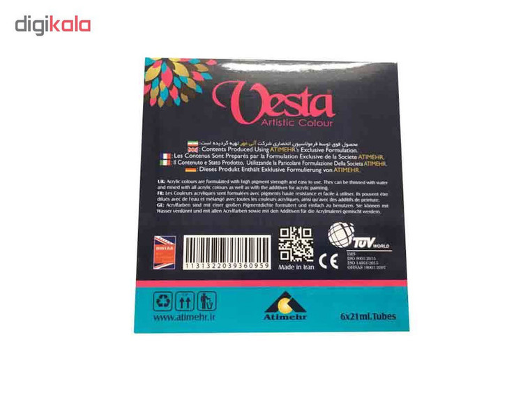 رنگ اکریلیک وستا مدل 65 حجم 21 میلی لیتر بسته 6 عددی