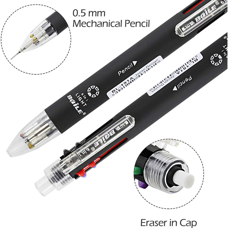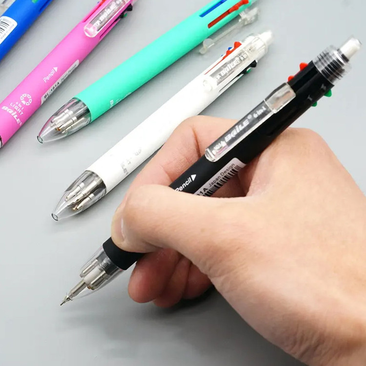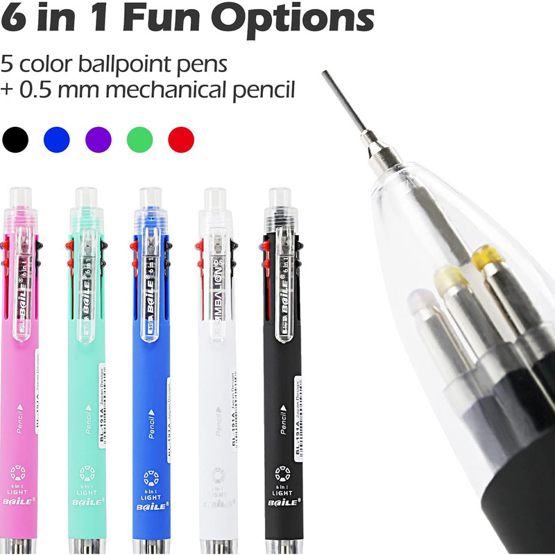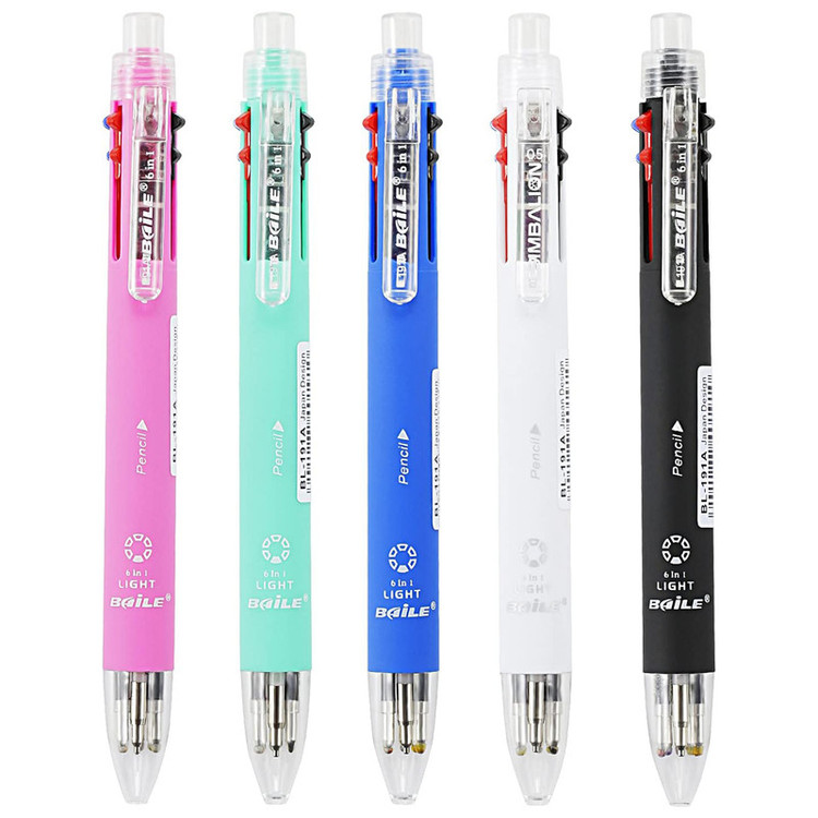خودکار های چند منظوره اتود دار بایلی یکی از بهترین و باکیفیت ترین خودکار های موجود در بازار می باشد که می تواند نیاز شما به چند رنگ خودکار و همچنین اتود را به صورت همزمان برطرف سازد.این محصول دارای خودکار 5 رنگ (آبی + قرمز + مشکی + سبز + بنفش) به همراه اتود با نوک 0/5 میلیمتری می باشد که با 5 رنگ متفاوت بدنه متناسب با سلیقه های متفاوت تولید گردیده است.