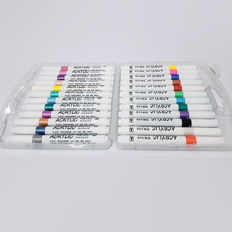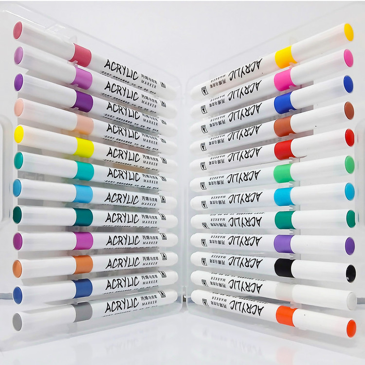 این ماژیک اکریلیک 24 رنگ بر پایه آب ساخته شده و دارای رنگ های بسیار شفاف و زنده با پیگمنت قوی می باشد که قابل استفاده بر روی انواع سطوح مثل کاغذ ، مقوا ، شیشه ، پلاستیک ، پارچه و ... است .