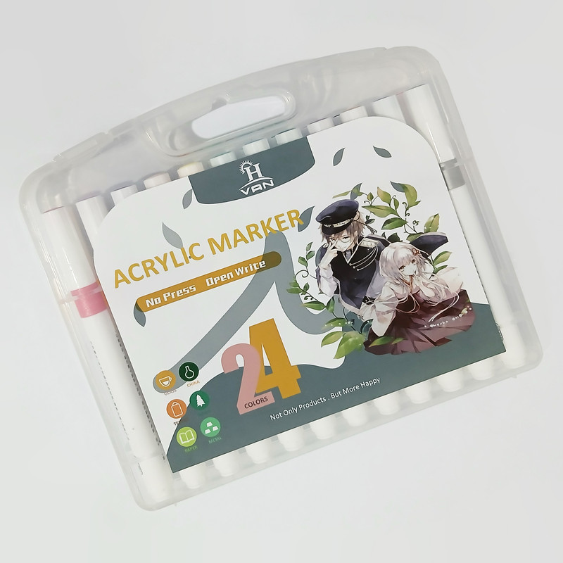 این ماژیک اکریلیک 24 رنگ بر پایه آب ساخته شده و دارای رنگ های بسیار شفاف و زنده با پیگمنت قوی می باشد که قابل استفاده بر روی انواع سطوح مثل کاغذ ، مقوا ، شیشه ، پلاستیک ، پارچه و ... است .
