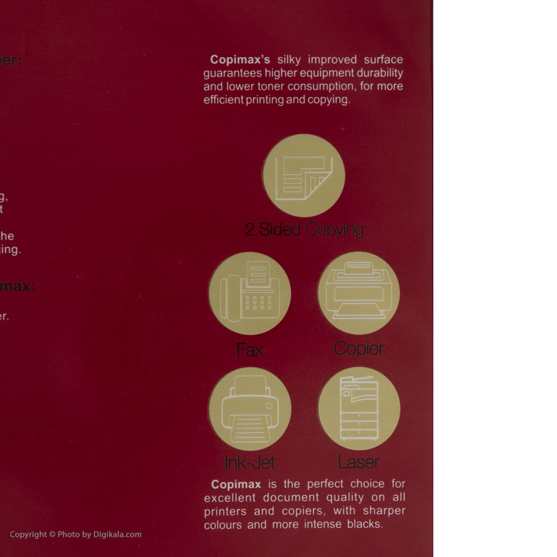 سایر توضیحات- 5 بسته 500 عددی - امکان چاپ در دو سمت کاغذ - مناسب برای استفاده در پرینت لیزری، جوهر افشان، دستگاه کپی و فکس - دارای بسته بندی از جنس پروپلین با خاصیت ضد آب - استفاده شده از چوب درخت اکالیپتوس