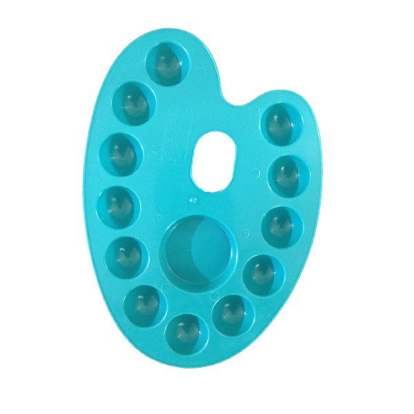 این پالت دارای انحنا برای سهولت در دست گرفتن و مخصوص کار با گواش می باشد. همچنین پالت یکی از لوازم ضروری انواع تکنیک ها میباشد . پالت گواش تخم مرغی( 12خانه) دارای 12 جایگاه مخلوط رنگ میباشد این پالت از جنس پلاستیک بوده است و بسیار سبک و ظریف میباشد.و برای استفاده بلندمدت بسیار پیشنهاد میشود.