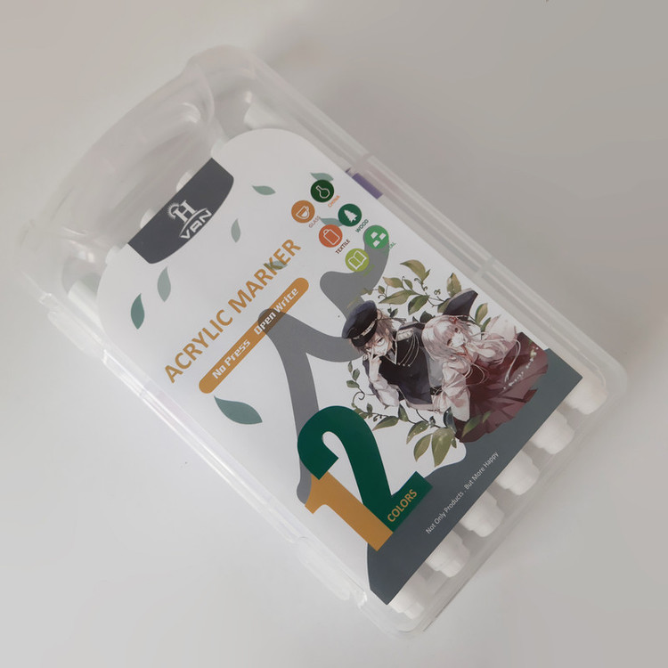 این ماژیک اکریلیک 12 رنگ بر پایه آب ساخته شده و دارای رنگ های بسیار شفاف و زنده با پیگمنت قوی می باشد که قابل استفاده بر روی انواع سطوح مثل کاغذ ، شیشه ، پلاستیک ، پارچه و ... است .