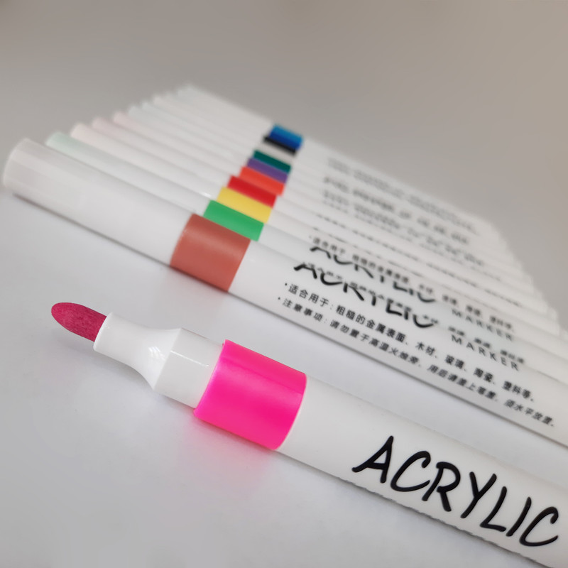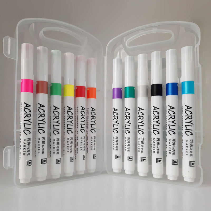 این ماژیک اکریلیک 12 رنگ بر پایه آب ساخته شده و دارای رنگ های بسیار شفاف و زنده با پیگمنت قوی می باشد که قابل استفاده بر روی انواع سطوح مثل کاغذ ، شیشه ، پلاستیک ، پارچه و ... است .