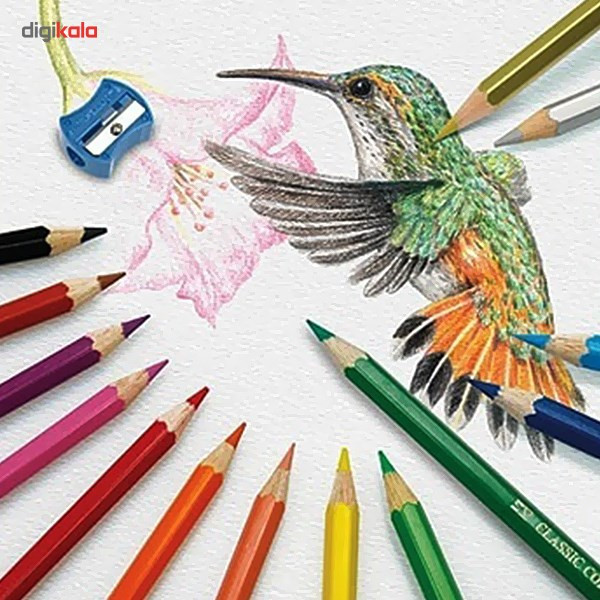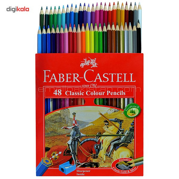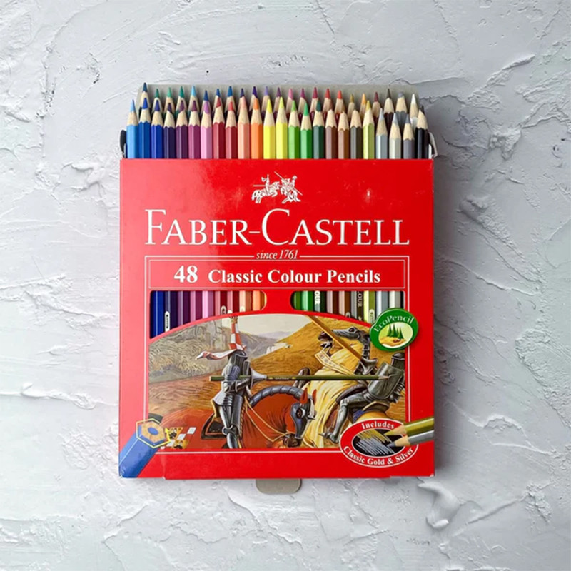 یکی از مداد رنگیهای مشهور در دنیا، مداد رنگی کلاسیک فابر کاستل است. بدنهی این مداد رنگی به کلاسیکترین شکل ممکن مداد – یعنی ششضلعی- طراحی و از جنس چوب ساخته شده است. این بدنهی شش ضلعی به مداد شکل ارگونومیکی داده است که در استفادهی طولانی مدت دست را خسته نمیکند و به آن آسیبی نمیزند. شش ضلعی بودن بدنه از لیز خوردن مداد در دست یا روی میز هم جلوگیری میکند.نوک این مدادها در برابر فشار بسیار مقاوم است و نمیشکند. بهعلاوه تمامی رنگهای موجود در این بسته48 عددی درخشان و شفاف هستند. این رنگها را میتواند به سرعت و به آسانی با هم ترکیب کرد.مزیت مهم این مداد رنگیها، دوام رنگشان است. با این ویژگی شما میتوانید نقاشیهای کودک خود را برای سالهای طولانی نگه دارید. مداد رنگی کلاسیک فابر کاستل کاملاً غیر سمی است و شما دیگر نگران مسموم شدن کودکتان در صورت تماس مداد رنگی با دهان یا چشم او نخواهید بود.در بستهبندی مقوایی این مداد رنگی یک تراش نیز به عنوان هدیه قرار داده شده است.