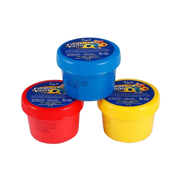 رنگ انگشتی 3 رنگ پارس - مناسب برای کودکان بالای 3 سال - قابل استفاده بر روی کاغذ، مقوا، سرامیک، شیشه و پارچه - امکان شستشو با آب و مایع ، جعبه مقوایی فانتزی مناسب برای کودکان - در 3 رنگ زیبا، شفاف و ماندگار، با ترکیب رنگ آسان، غیر سمی، در حجم هر قوطی 55 گرم
