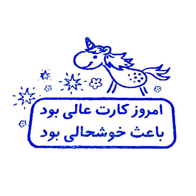مهر تشویقی دانش آموز با طرح اسب شاخدار و همچنین نوشته (امروز کارت عالی بود باعث خوشحالی بود) با ابعاد طرح 35x40 میلیمتر می باشد. مناسب برای والدین و مربیان جهت تشویق دانش آموزان. همچنین می توانید از رنگهای متنوع استامپ جهت تنوع رنگ چاپ این مهر استفاده نمایید.