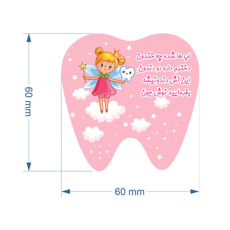 لیبل پشت چسبدار کاغذی طرح دندونی دخترانه یکی از پرطرفدارترین نوع استیکر و لیبل می باشد که مناسب برای زیباتر شدن و خاص تر بودن بسته بندی های جشن دندونی نوزاد شما می باشد.
