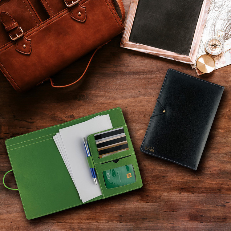 کلاسور A5 چرم کایرا بدلیل کاربردی بودن در بین برگزار کنندگان سمینار، کارمندان، استادان، دانشجویان و دانش آموزان محبوب بوده و برای رفع نیاز آنها مناسب است.این محصول دارای جای کاغذ یادداشت سایز A5 ، جای خودکار، سه محفظه برای کارت ویزیت یا کارت بانکی، یک محفظه برای کارت شناسایی و یک محفظه کاغذ یادداشت میباشد.جنس کلاسور کایرا از چرم مصنوعی با کیفیت می باشد و نحوه ی باز و بسته شدن آن با کش است و در رنگ های قرمز، آبی، سبز و بنفش به بازار عرضه شده است.