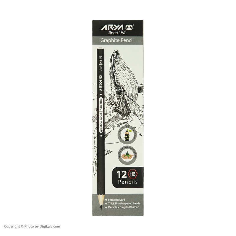 مداد مشکی آریا کد 3001 بسته 12 عددی دارای ویژگیهای زیر است: