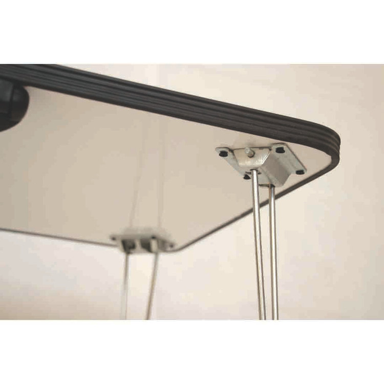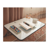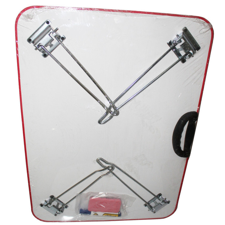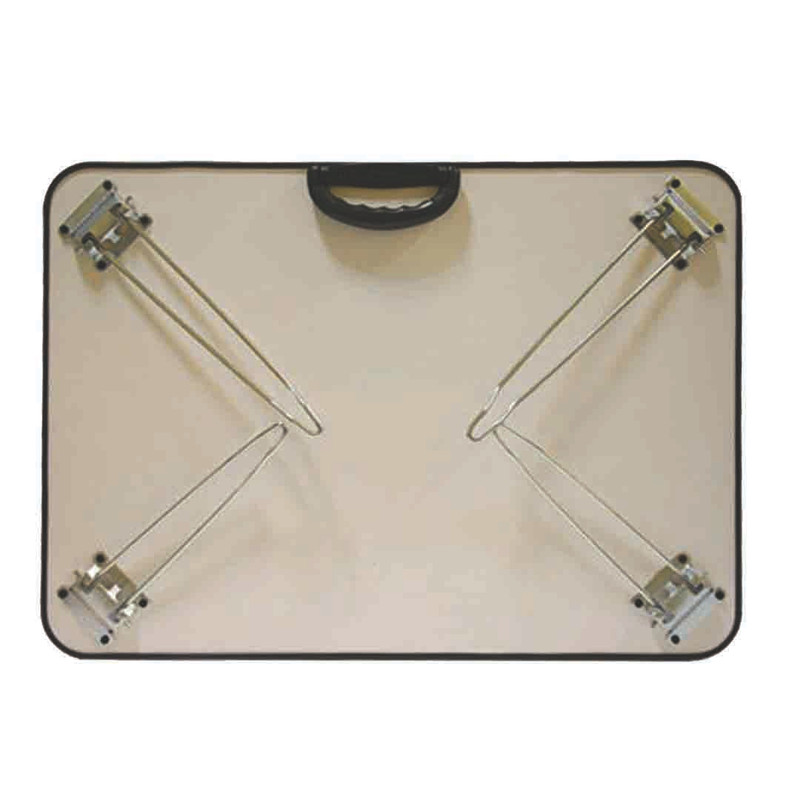 سایز این محصول 50x70 سانتی متر می باشد. ارتفاع میز از یک طرف 25 سانتی متر و از طرفی دیگر 30 سانتی متر می باشد. میز در حالت باز به صورت شیب دار قرار می گیرد. جنس میز از ورق ام دی اف ملامینه هایگلاس سفید می باشد که سطح آن قابلیت نوشتن با ماژیک وایت برد را دارد. روکش آن مقاوم، ضد خش و ضد آب می باشد. کیفیت سطح میز عالی می باشد و به راحتی اثر ماژیک از روی سطح پاک می گردد. قابلیت استفاده به عنوان تخته وایت برد را دارد. قابلیت تنظیم پایه وجود ندارد. مناسب برای نقاشی و آموزش کودکان، انجام تکالیف دانش آموزان، مطالعه، تحقیق و پژوهش دانشجویان، اساتید و طلاب، طراحیِ طراحان، میز نماز برای بعضی از افرادی که نماز را نشسته می خوانند، تخته آموزش برای مربیان و معلمان عزیز و... است. از این میز به عنوان میز لپ تاپ نیز می توان استفاده نمود. این محصول دارای ماژیک دو طرفه و تخته پاکن می باشد. پایه ها فلزی است و به صورت کامل جمع می شود. حمل و نقل آسان با توجه به دسته طراحی شده با مقاومت کافی را دارد.