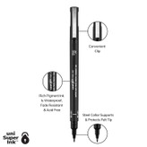 راپید یونی بال مدل Pin قطر نوشتاری 0.6 میلیمتر علاوه بر کاربرد معمولی بسیار مناسب برای کارهای نقشهکشی و گرافیکی و کشیدن خطوط اصلی و ضخیم است. نوع نوک این راپید 0.6 میلیمتر بوده و از جنس پلاستیک است. جوهر به کار رفته در آن دارای رنگدانههای ضدآب بوده و مقاوم در برابر کمرنگشدن است. در صورتی که با نقشهکشی سروکار دارید میتوانید از این راپید برای ترسیم خطوط اصلی یا هر خط نسبتاً ضخیم دیگری استفاده کنید. کار با این راپیدها روی کاغذ گلاسه بسیار آسان است. قابلیت ترسیم خطی به طول 2000 متر از ویژگیهایی است که برای رسم اشکال و خطوط تخصصی بسیار کاربردی است و با این راپید میتوانید به راحتی تا 2000 متر خط را رسم کنید. وزن کم و طراحی مناسب راپید یونی بال مدل Pin باعث حمل آسان آن در کیف و جیب است.