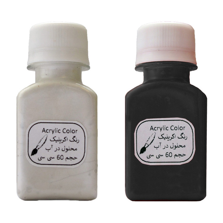 این بسته شامل ۲ رنگ سفید و مشکی میباشد . رنگ اکریلیک محلول در آب بوده اما پس از خشک شدن قابلیت شستشو دارد . از رنگ اکریلیک می توانید برای رنگ آمیزی چوب ، سفال ، دیوار ، و بسیاری موارد دیگر استفاده نمایید . حجم هریک از رنگها ۶۰ میلی لیتر تقریبا معادل ۱۰۰ گرم میباشد .