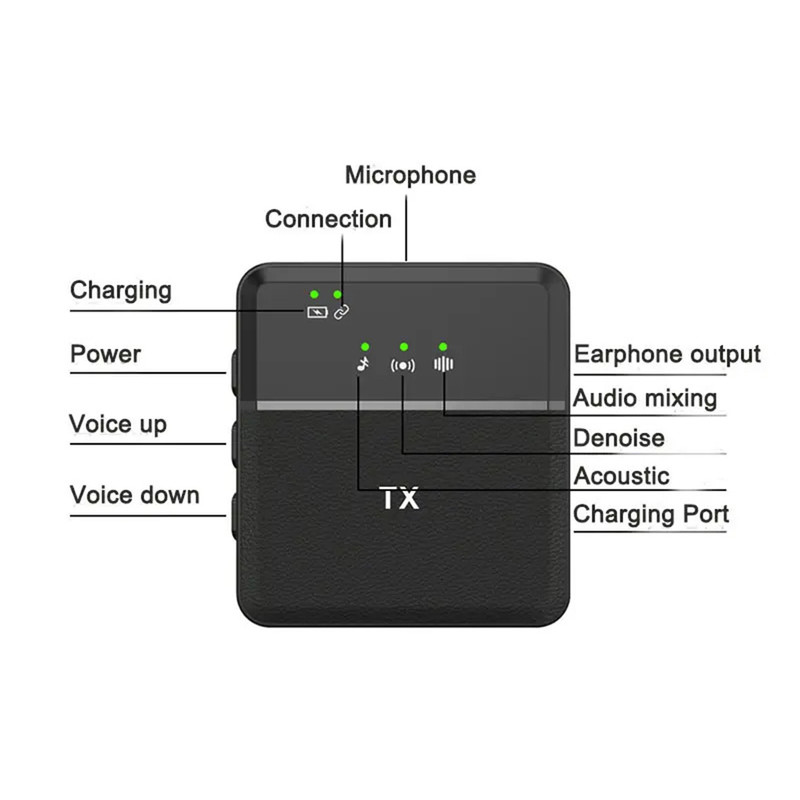 SX8 Type-C یک میکروفن بی سیم یقه ای مناسب انواع گوشیهای موبایل ، تبلت و لپ تاپ مجهز به درگاه یو اس بی تایپ سی USB-C میباشد . نوع میکروفن لاوالیر lavalier کندانسر الکتریکی بوده که بصورت 360 درجه صدا را جذب میکند. این دستگاه بدون نیاز به هیچ گونه نرم افزار به گوشی شما متصل شده و صدا را با کیفیت بسیار عالی و شفاف به گوشی منتقل میکند . سیستم هوشمند حذف نویز این میکروفن بهترین کیفیت دریافت صدا در محیط های شلوغ و هنگام وزش باد در محیط باز را تضمین میکند . به لطف تکنولوژی 2.4GHZ انتقال صدا بدون هیچگونه تاخیری انجام میشود . شعاع عملکرد این میکرفن 25 متر ( بدون مانع ) و مدت زمان شارژ دهی آن 12 ساعت میباشد . فقط کافیست که قطعه گیرنده را به انتهای گوشی خود ( درگاه یو اس بی تایپ سی USB-C ) متصل کرده و میکرفن را روشن کنید ، بصورت کاملا خودکار فرستنده و گیرنده به یکدیگر متصل شده و شروع به کار میکنند . این دستگاه مناسب برای لایو استریمینگ ، کلاسهای آنلاین آمورشی ، ساخت ویدیو های آموزشی و تبلیغاتی و در آخر ولاگینگ میباشد