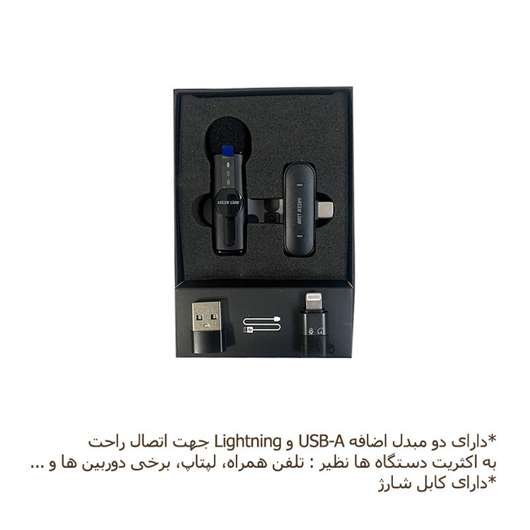 میکروفن بی سیم گرین لاین مدل GM-75X با درگاه اتصال USB-C/لایتنینگ/USB-A