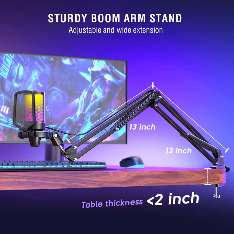 طراحی نورپردازی جذاب نورپردازی RGB دو رنگ با تغییر تدریجی، زیبایی خاصی به میکروفن میبخشد. این نورهای نرم و هماهنگ باعث میشوند ویدیوهای بازی یا استریم شما بیشتر جلب توجه کنند و کانال شما را از سایرین متمایز کند. اگر تنها یک گیمر هستید، RGB غنی با رنگهای متنوع لوازم جانبی کامپیوتر شما، نیازهای فضایی بازی را برآورده میکند.