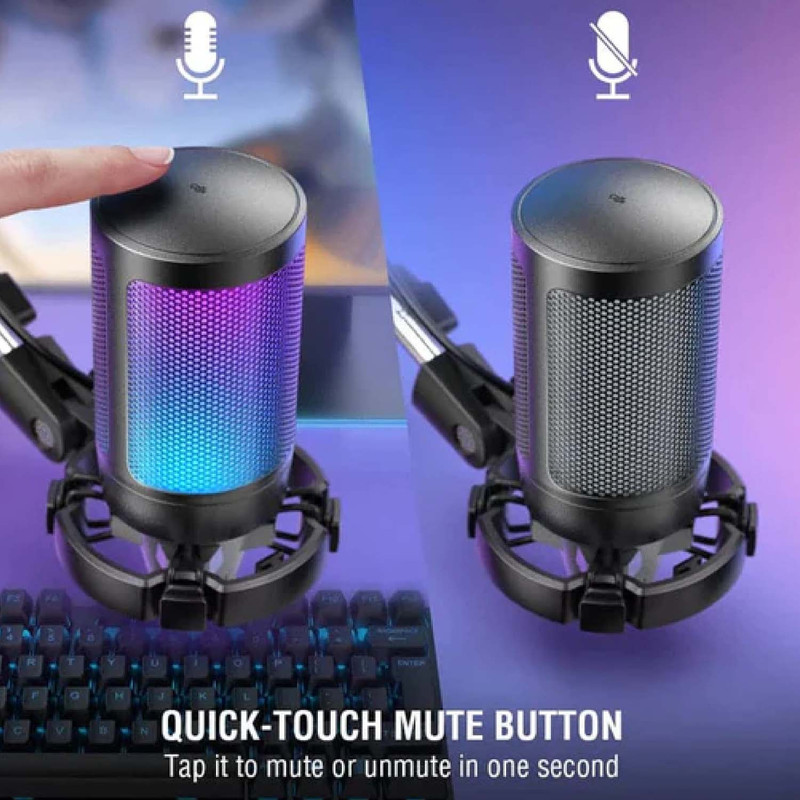 استفاده آسان از امکانات دکمه لمسی بیصدا کردن در بالای میکروفن قرار دارد که به شما این امکان را میدهد به راحتی با یک دست آن را فشار دهید و نیازی به نگهداشتن میکروفن برای فشار دادن دکمه نیست. این بیصدا کردن سریع نه تنها بر روی عملیات کیبورد تأثیر نمیگذارد بلکه صدای تیکتیک نیز تولید نمیکند. ولوم بزرگ در پایین میکروفن تنظیم صدا را آسانتر کرده و به شما این امکان را میدهد که در هر زمان حجم صدا را تنظیم کنید بدون اینکه از صفحه بازی خود دور شوید.