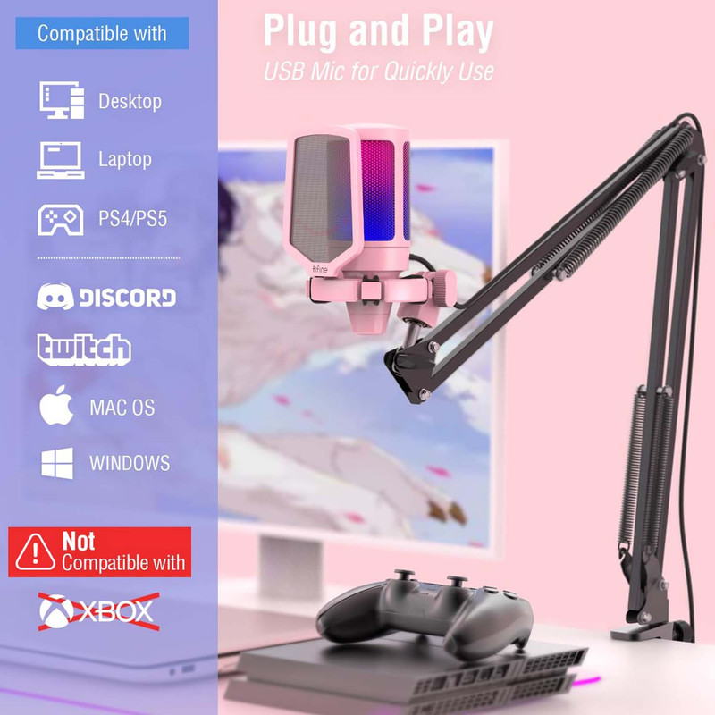 یک میکروفن USB است که بهراحتی و بدون نیاز به افزونههای اضافی یا مراحل پیچیده نصب، آماده استفاده است. این میکروفن با سیستمعاملهای Windows، Mac و PS4/5 سازگار است. انتهای میکروفن دارای رابط Type-C است که بهصورت معکوس قابل اتصال است و این ویژگی در محیطهای تاریک بازی، کار با آن را آسانتر میکند. کابل USB با طول 8.3 فوت (2.5 متر) به اندازه کافی بلند است تا از پشت سیستم به میز کار برای ضبط صدا کشیده شود.