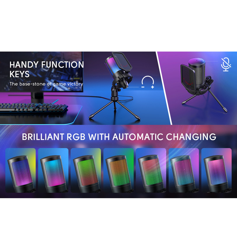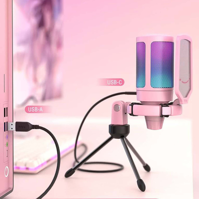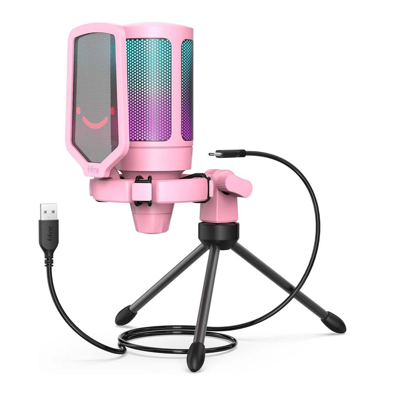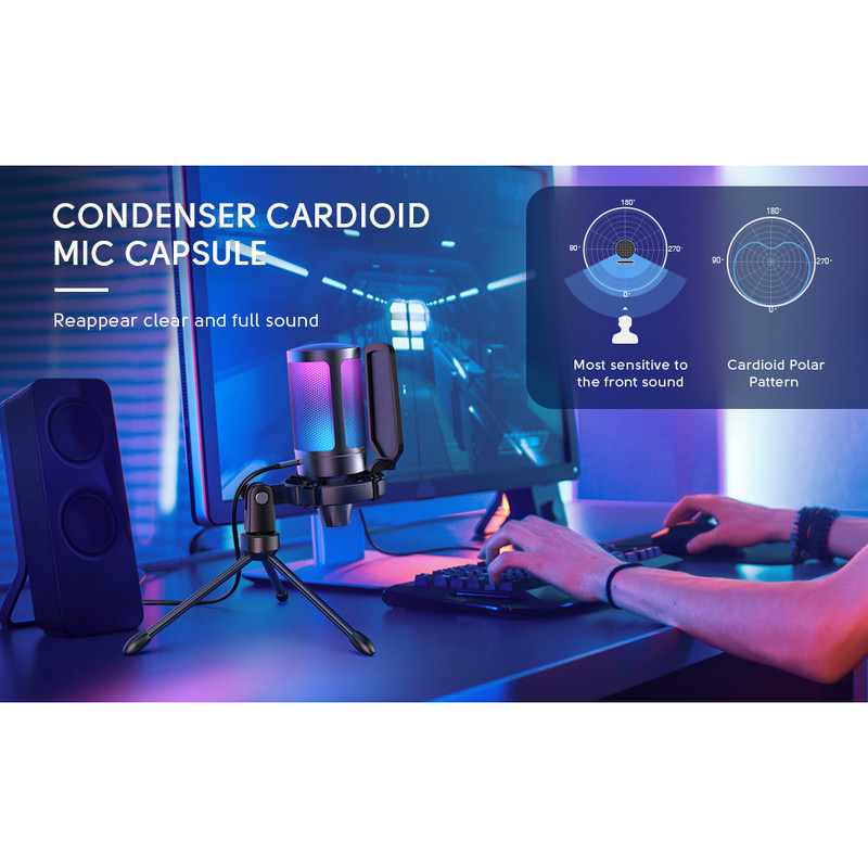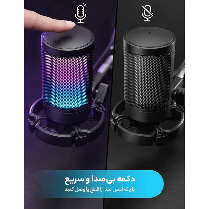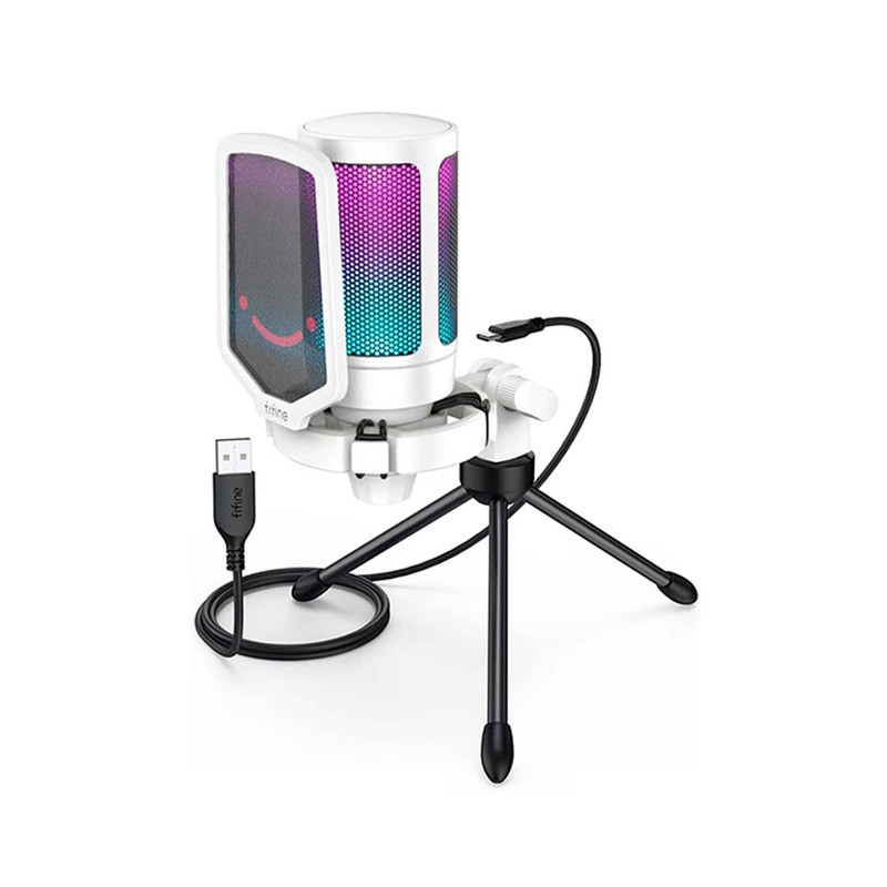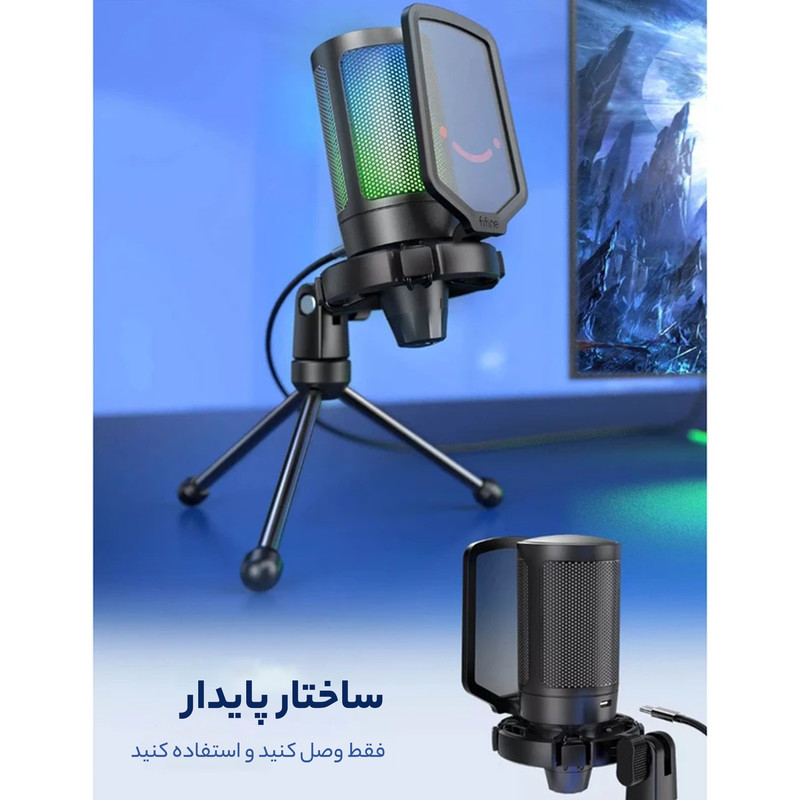 میکروفون کندانسر A6V یک میکروفون گیمینگ بدنه باکیفیت،خوش ساخت و کاربردی است.طراحی این میکروفون گیمینگ به طریقی است که اگر شما روی میکروفون را لمس کنید صدای این میکروفون گیمینگ قطع و خاموش می شود که این طراحی به نوع خود در گیمینگ بسیار منحصر به فرد می باشد.این میکروفون گیمینگ از نوع RGB می باشد یعنی با توجه به نوع بازی و اکشن های بازی نور های این میکروفون به صورت هوشمندانه تغییر میکند و فضای یک گیمر GAMER واقعی و حرفه ای را تداعی میکند. صدای این میکروفون گیمینگ را می توانید در زیر این میکروفون کم و زیاد کنید که باز به نوع خود بسیار یوزر فرندلی تر و هوشمندانه تر طراحی شده است. این میکروفون دارای رابط USB-A و USB-C می باشد . این میکروفون گیمینگ فای فاین مجهز به تکنولوژی plug and play می باشد یعنی وقتی این میکروفون را به دستگاه وصل کنید نیاز به کارت صوتی ندارد و به صورت اتوماتیک میکروفون نصب می شود و تنظیمات هم به صورت اتوماتیک روی میکروفون فای فاین قرار میگیرد. حساسیت صدای این میکروفون حرفه ای کندانسر بین محدوده ی 40- دسی بل تا +- 2 دسی بل می باشد که به نوع خود در میکروفون های گیمینگ بسیار بی نظیر است. فرکانس این میکروفون نیز در محدوده ی 60Hz تا 20kHz می باشد که هم مناسب ضبط صدای ساز و موسیقی می باشد و هم مناسب برای تولید پادکست. میکروفون کندانسر گیمینگ فای فاین A6V نه تنها می تواند به عنوان یک میکروفون کارائوکه با کیفیت بالا مورد استفاده قرار گیرد ، بلکه بسته به تجهیزات همچنین برای ضبط های استودیویی یا استفاده حرفه ای و ضبط های واضح و شفاف به عنوان دوبله ویدیویی ، برای تولید نمایشنامه های رادیویی یا دوبله کلیپ های تبلیغاتی میتواند مورد استفاده قرار گیرد.