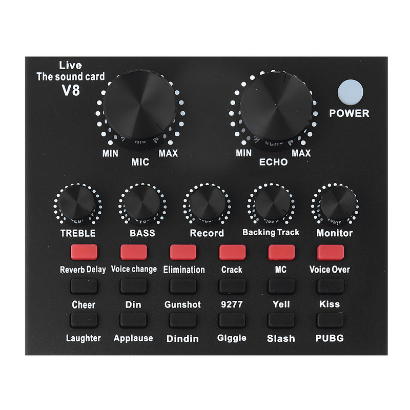 میکروفون BM800 همراه با کارت صدای v8 مدل Legendary Vocalیک میکروفون خوش ساخت؛ همراه با کارت صدایی کوچک و کارآمد . نمونه های مختلفی از BM800 در بازار موجود است که نمونه ارایه شده دارای برد بزرگ می باشد (در نمونه اصلی برد میکروفون حدود 80% از فضای داخل میکروفون را پر کرده است که با پیچاندن انتهای میکروفون و برداشتن کاور قابل ملاحظه می باشد ) که با نمونه های غیر اصل در بازار که برد کوچکی دارند دارای اختلاف زیادی در کیفیت و نوع رکورد می باشد که تصویر آن را می توانید مشاهده کنید و نشانه های آن را به خاطر بسپارید . کارت صدا از نوع V8 می باشد که این کارت صدا نیز نمونه اصلی می باشد که دارای دکمه هایی از پلاستیک نرم می باشد که با روشن شدن دستگاه نوری رنگین کمانی متغییر زیر دکمه پاور روشن و خاموش می گردد و دکمه های یک ردیف بالایی نیز به رنگ قرمز روشن می شود . که این کارت صدا نیز با نمونه هایی که از نظر ظاهری شبیه می باشند کاملا متفاوت در عملکرد می باشد .