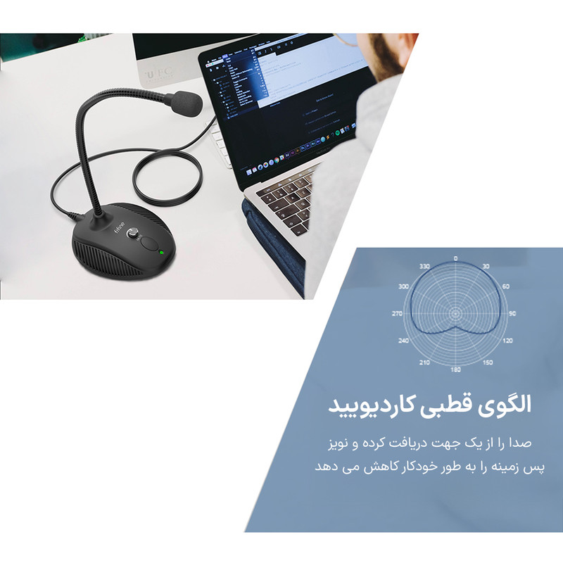 میکروفون Fifine K054 با الگوی دریافت کاردیویی، صدای روبهرو را با وضوح بالا میگیرد و صداهای اضافی محیط اطراف را تا حد زیادی حذف میکند. نتیجه این است که صدای شما در جلسات و کلاسها واضح، متمرکز و حرفهای شنیده میشود — نه دور و گرفته مثل میکروفون لپتاپ.