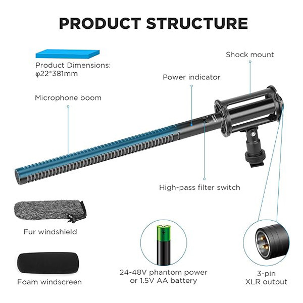 میکروفن شات گان بویا BOYA BY-BM6060L به همراه یک بادگیر خزدار، یک بادگیر فومی و یک شاک مانت ضد لرزش عرضه شده است که منجر به ضبط صداهایی شفاف با کمترین نویز شده و راه حلی اقتصادی برای فیلمبرداران و صدابرداران به شمار می¬آید. ویژگی اصلی این میکروفون، ضبط صدا از ناحیه ای با زاویه محدود است.لوله بلند این میکروفون در کنار الگوی قطبی سوپرکاردیوید آن و سوییچ فیلتر High-pass در فرکانس 150Hz سبب از بین رفتن نویزهای مزاحم محیطی یا صداهای ناشی از حرکت میکروفون می¬شود. بازه پاسخدهی فرکانس این میکروفون از 40Hz تا 20kHz است که برای ضبط صدای افراد، صداهای محیط، صدای طبیعت و افکت های صوتی بسیار مناسب است. با استفاده از بادگیرهایی که به همراه این محصول ارائه شده نیز می¬توان نویز باد را به طور محسوسی کاهش داد.از آنجایی که میکروفن شات گان بویا BOYA BY-BM6060L قابلیت استفاده با یک عدد باتری قلمی AA یا جریان برق فانتوم پاور 12 تا 48 ولتی را دارد؛ استفاده از آن با طیف وسیعی از دستگاه¬ها ماننند دوربین، میکسر و رکوردرهای قابل حمل ممکن است. اتصال این میکروفون به دستگاه¬ها مختلف توسط یک خروجی XLR انجام میشود.با استفاده از بادگیر فومی همراه این میکروفون، می توان نویز ناشی از بادهای آرام یا صدای تهویه را خنثی کرد. در صورتی که نیاز به استفاده در بادهای شدیدتر یا فضای باز نیز میتوان از بادگیر خزداری که به همراه این محصول ارائه شده استفاده کرد.