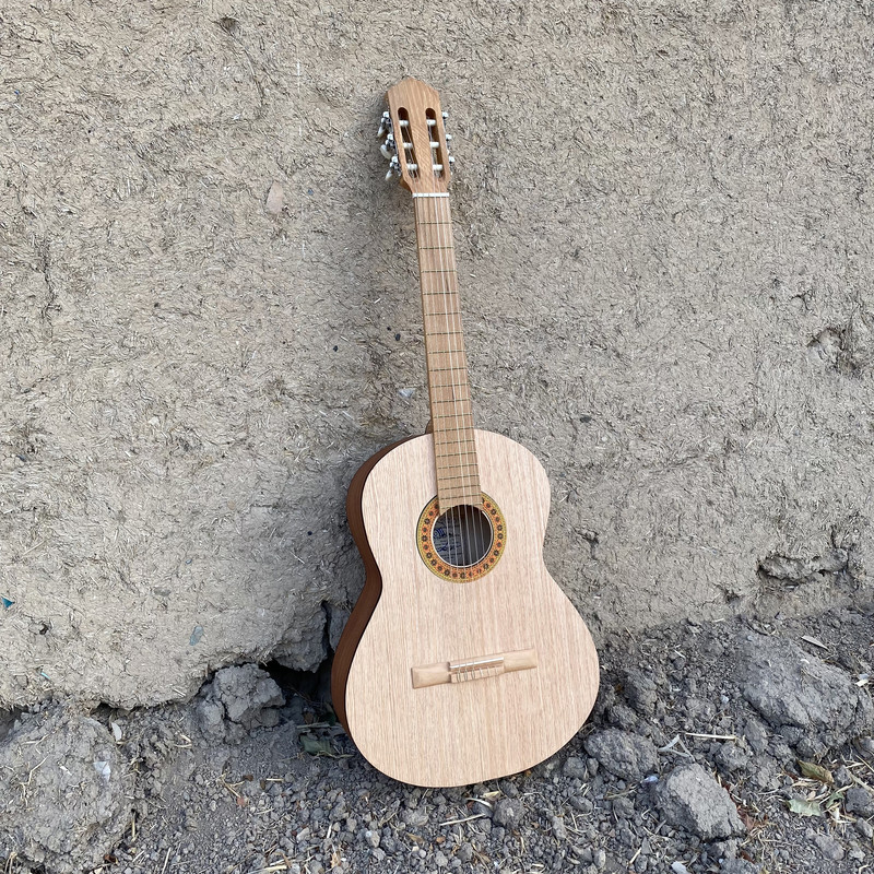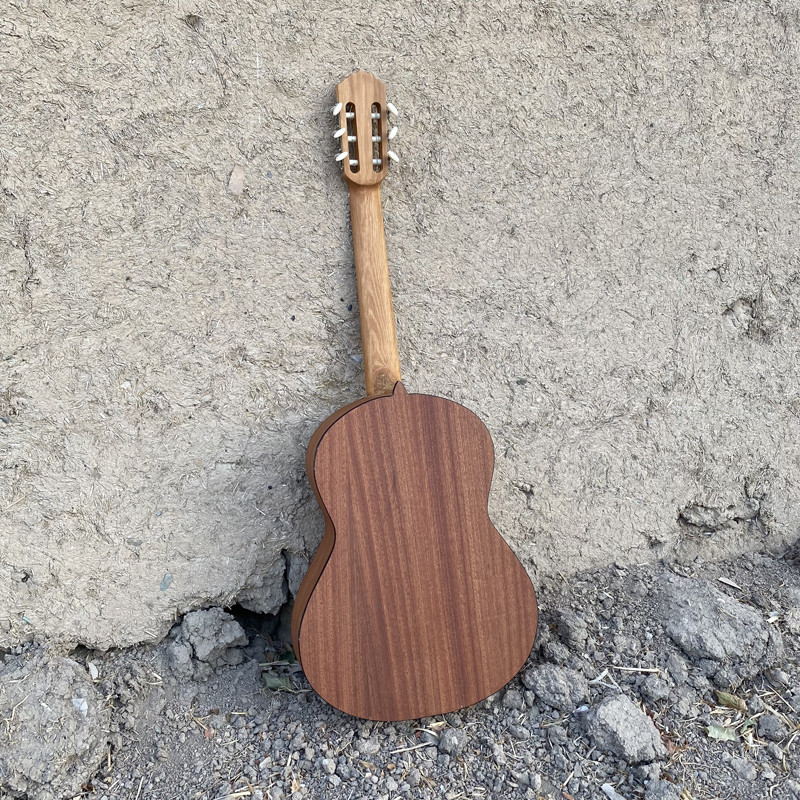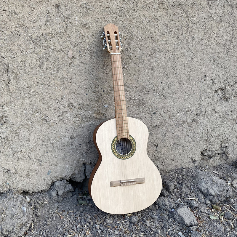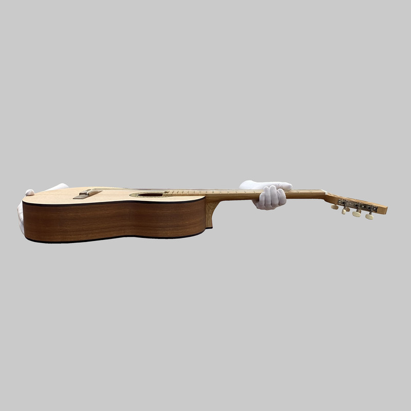 این گیتار میتواند انتخاب درستی باشد برای هر کسی که علاقه مند به این ساز زیباست،و قصد دارد نواختن آن را فرابگیرد.رنگ این ساز مات،و تماماً خود رنگ است،به این منظورکه رنگ و نقشی که میبینید،با رنگ آمیزی ایجاد نشده،و همگی ظاهر زیبای چوب های استفاده شده در این ساز است.سایز کامل استاندارد یا 4/4،آن را برای بزرگسالان،و نوجوانان 9 سال به بالا مناسب میسازد.صفحه پشت و کناره ها از جنس چوب ساپلی است،که چوبی با ارزش از جنگل های آفریقا میباشد،و عملاً بهترین چوب برای بک و ساید گیتار است.صفحهی رویی از جنس چوب اسپیروس است،که مرغوب ترین چوب برای ساخت صفحه ی رو به شمار می آید،و صدایی حرفه ای ایجاد میکند.چوب اسپیروس در صفحه رو،باعث ایجاد صدایی گرم،صدا دهی شفاف و درخشان،و پرتاب صدای واضح و دلنشین ساز میشود،گویی به عنوان یک صافی صدا عمل میکند،تا صدایی دلنشین و لذت بخش را به گوش نوازنده برساند.