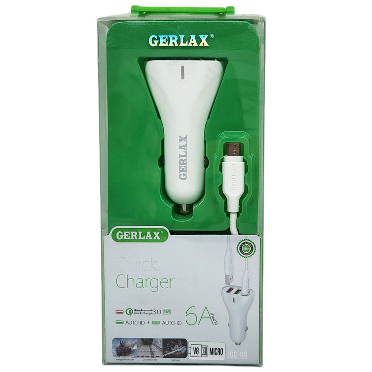 شارژر فندکی 18 وات 3 عدد درگاه خروجی USB جرلکس مدل GC-08 به همراه کابل تبدیل Micro-USB