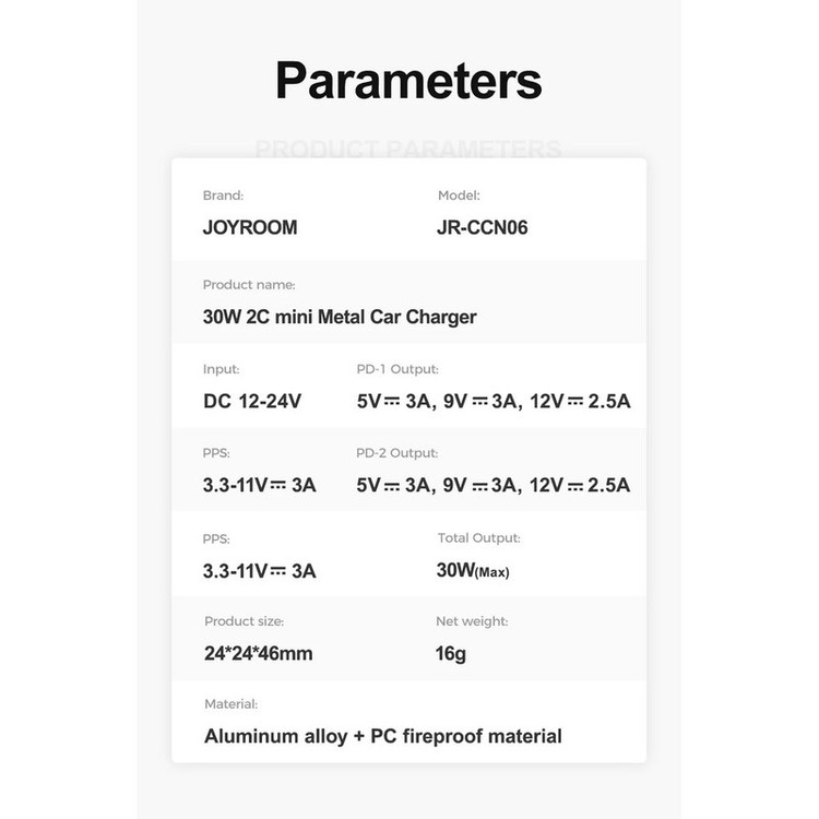 شارژر فندکی 30 وات جوی روم مدل CCN06