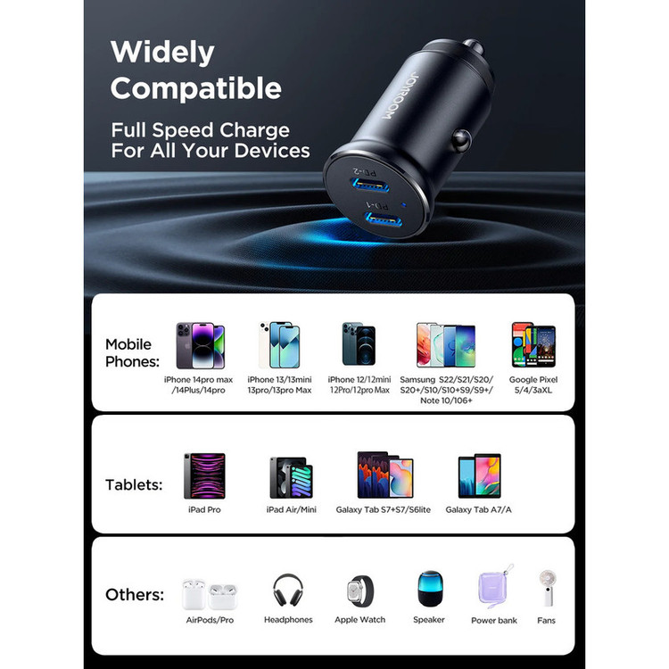 ما در تکنیک تل به دنبال خلق تجربهای متفاوت و حرفهای برای مشتریان خود هستیم. شارژر فندکی جوی روم مدل JR-CCN06 یکی از محصولات برجسته ما است که با طراحی مدرن و عملکرد بینظیر خود، به کاربران امکان شارژ سریع و ایمن دستگاههای الکترونیکی را در خودرو فراهم میکند. این شارژر فندکی با بدنهای از آلیاژ آلومینیوم و پلیکربناتنسوز طراحی شده است که علاوه بر مقاومت بالا در برابر حرارت، بسیار بادوام و زیبا است. ابعاد کوچک و مینیمال آن (46x24×24 میلیمتر) باعث میشود فضای کمی اشغال کند و به راحتی در جافندکی خودرو نصب شود، حتی در جادههای ناهموار نیز بهطور پایدار باقی میماند. با دو درگاه خروجی USB-C که هر دو از فناوری شارژ سریع Power Delivery (PD) پشتیبانی میکنند، این شارژر قابلیت شارژ همزمان دو دستگاه را بدون کاهش سرعت و کارایی دارد. حداکثر توان خروجی 30 وات، به شما این امکان را میدهد تا گوشیهای هوشمند، تبلتها و سایر دستگاههای الکترونیکی را در سریعترین زمان ممکن شارژ کنید. این محصول از پروتکلهای شارژ سریع متعددی همچون PD3.0، QC3.0، PPS، Samsung AFC و Huawei FCP پشتیبانی میکند، که این ویژگیها باعث سازگاری گسترده با انواع برندها و مدلهای گوشیهای موبایل و تجهیزات دیگر میشود. علاوه بر این، سیستم حفاظت ایمنی چندگانه آن از دستگاههای شما در برابر جریان و ولتاژ بیش از حد، اضافه بار، گرمای زیاد و اتصال کوتاه محافظت میکند. شارژر فندکی جویروم مدل JR-CCN06 انتخابی ایدهآل برای افرادی است که به دنبال محصولی کوچک، باکیفیت و قابل اعتماد برای استفاده در خودروهای سبک و سنگین هستند. توجه داشته باشید، محصولات اورجینال جوی روم را تنها از تکنیک تل تهیه کنید. قیمت پایین برخی فروشندگان نشاندهنده عرضه محصولات کپی و تقلبی است. با خرید شارژر فندکی جوی روم مدل JR-CCN06 از تکنیک تل، کیفیت، اصالت و عملکردی بینقص را برای خود تضمین کنید. تکنیک تل، انتخاب هوشمندانه برای تجربه فناوریهای اصیل.