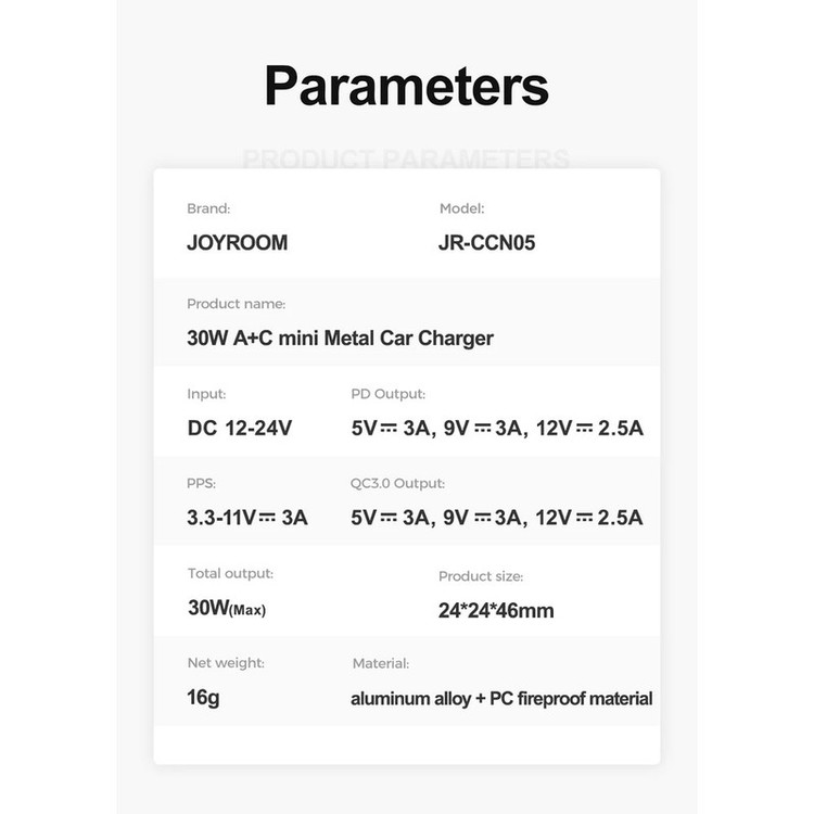 شارژر فندکی 30 وات جوی روم مدل CCN05