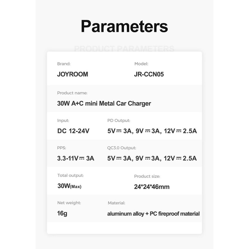 شارژر فندکی 30 وات جوی روم مدل CCN05