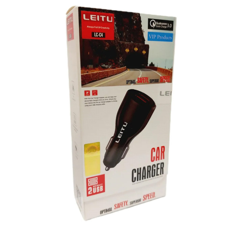 شارژر فندکی مدل LC-C4 یک شارژر با کیفیت که توسط شرکت LEITU ساخته شده است. شارژرهای فندکی یک راه رایج برای جلوگیری از تمام شدن شارژ باتری گجتهای هوشمند شما در طول روز و ساعاتی که به پریز برق دسترسی ندارید، محسوب میشوند. شما با استفاده از یک شارژر فندکی میتوانید باتری گوشیهای موبایل، دوربین دیجیتال، موزیک پلیر و دیگر دستگاههای از این قبیل خود را داخل خودرو، بدون نیاز به استفاده از پریز برق، شارژ کنید. شرکت لیتو این شارژر را با وزنی معادل 20 گرم طراحی کرده است. روی سطح این شارژر 2 درگاه خروجی USB تعبیه شده که شدتجریان خروجی در آنها 9V=1.8A , 12V=1.8A, 5V=3.1Aآمپر است. این شارژر میتواند ابزار دیجیتالی شما را به صورت سریع شارژکنند. این محصول با توجه به مجهز بودن به استانداردهای QC میتواند انواع گوشیهای موبایل و تبلت را هم بهراحتی شارژ کند. ولتاژ ورودی در این محصول 12 تا 24 ولت است. پس برای استفاده از آن کافی است شارژر را بهطور مستقیم به درگاه فندک داخل خودرو متصل کنید.به همراه این محصول یک کابل تبدیل IOS هم ارائه شده است که طول آن برابر با 1 متر است.کابل با پوشش محافظ کنفی که در مقابل پارگی و قطع شدن مقاوم است و قابلیت انتقال جریان برق با سرعت بیشتر از کابلهای معمولی را نیز دارد