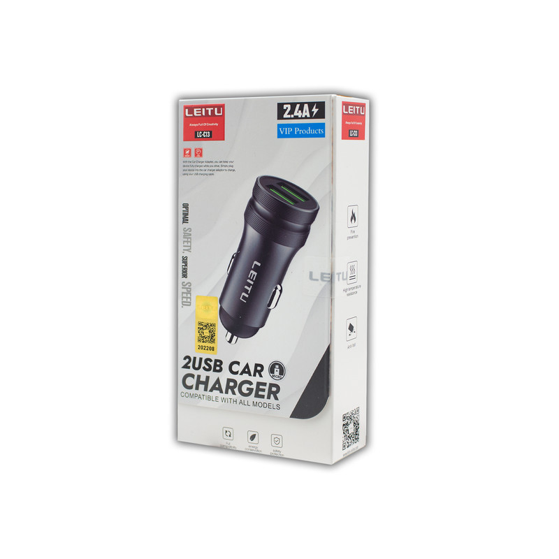شارژر فندکی مدل LC-C13 یک شارژر با کیفیت که توسط شرکت LEITU ساخته شده است. شارژرهای فندکی یک راه رایج برای جلوگیری از تمام شدن شارژ باتری گجتهای هوشمند شما در طول روز و ساعاتی که به پریز برق دسترسی ندارید، محسوب میشوند. شما با استفاده از یک شارژر فندکی میتوانید باتری گوشیهای موبایل، دوربین دیجیتال، موزیک پلیر و دیگر دستگاههای از این قبیل خود را داخل خودرو، بدون نیاز به استفاده از پریز برق، شارژ کنید. شرکت لیتو این شارژر را با وزنی معادل 40 گرم طراحی کرده است. روی سطح این شارژر 2 درگاه خروجی USB تعبیه شده که شدتجریان خروجی در آنها 5V/2.4 A آمپر است. ولتاژ ورودی در این محصول 12 تا 24 ولت است. پس برای استفاده از آن کافی است شارژر را بهطور مستقیم به درگاه فندک داخل خودرو متصل کنید .به همراه این محصول یک کابل تبدیل Lightning هم ارائه شده است که طول آن برابر با 1 متر است.
