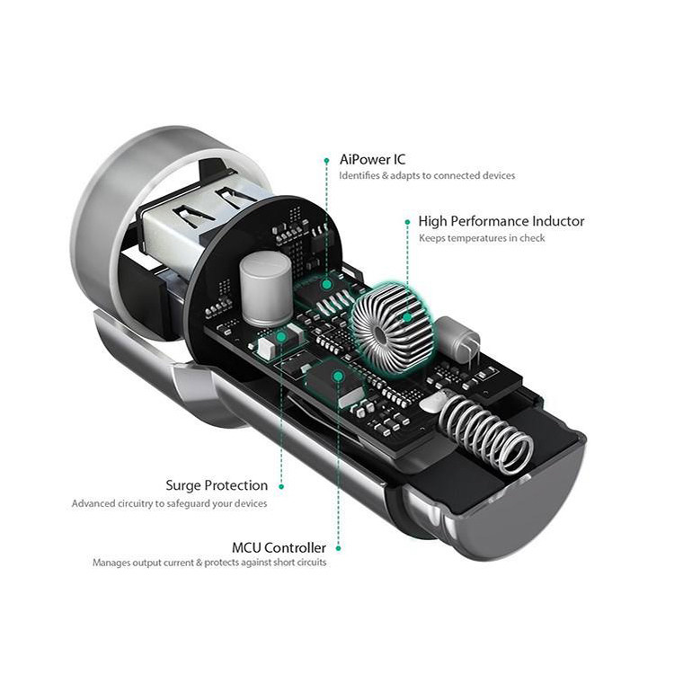 یکی از درگاههای به کار رفته در این شارژ فندکی خروجی 1 آمپر و دیگری خروجی 2.4 آمپر را ارائه میدهد. نکتهای که باید حتما مد نظر قرار دهید این است که اگر قصد شارژ تبلت خود را دارید باید آن را به درگاه با خروجی 2.4 آمپر متصل کنید. این شارژ فندکی همچنین از قابلیت AiPower بهره برده و توسط آن مقدار ورودی مناسب با دستگاه شما را تشخیص داده و با سرعت و ایمنی بیشتری آن را شارژ میکند.