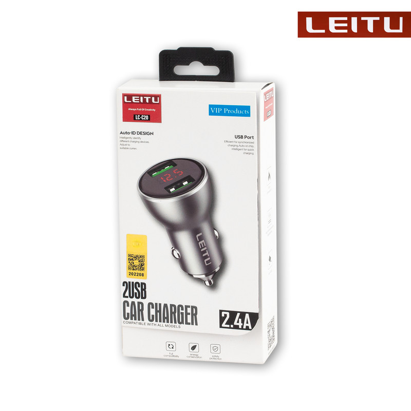 شارژر فندکی مدل LC-C20 یک شارژر با کیفیت که توسط شرکت LEITU ساخته شده است. شارژرهای فندکی یک راه رایج برای جلوگیری از تمام شدن شارژ باتری گجتهای هوشمند شما در طول روز و ساعاتی که به پریز برق دسترسی ندارید، محسوب میشوند. شما با استفاده از یک شارژر فندکی میتوانید باتری گوشیهای موبایل، دوربین دیجیتال، موزیک پلیر و دیگر دستگاههای از این قبیل خود را داخل خودرو، بدون نیاز به استفاده از پریز برق، شارژ کنید. شرکت لیتو این شارژر را با وزنی معادل 40 گرم طراحی کرده است. روی سطح این شارژر 2 درگاه خروجی USB تعبیه شده که شدتجریان خروجی در آنها 5V/2.4 A آمپر است. ولتاژ ورودی در این محصول 12 تا 24 ولت است. پس برای استفاده از آن کافی است شارژر را بهطور مستقیم به درگاه فندک داخل خودرو متصل کنید. همچنین این شارژر دارای یک نمایشگر برای نشان دادن ولتاژ و شدت جریان خروجی میباشد .به همراه این محصول یک کابل تبدیل لایتنینگ هم ارائه شده است که طول آن برابر با 1 متر است.