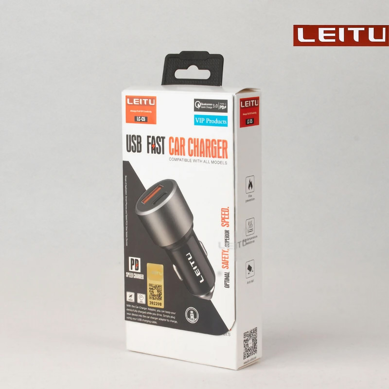 شارژر فندکی مدل LC-C5 یک شارژر با کیفیت که توسط شرکت LEITU ساخته شده است. شارژرهای فندکی یک راه رایج برای جلوگیری از تمام شدن شارژ باتری گجتهای هوشمند شما در طول روز و ساعاتی که به پریز برق دسترسی ندارید، محسوب میشوند. شما با استفاده از یک شارژر فندکی میتوانید باتری گوشیهای موبایل، دوربین دیجیتال، موزیک پلیر و دیگر دستگاههای از این قبیل خود را داخل خودرو، بدون نیاز به استفاده از پریز برق، شارژ کنید. شرکت لیتو این شارژر را با وزنی معادل 20 گرم طراحی کرده است. روی سطح این شارژر 2 درگاه خروجی USB و PD تعبیه شده که شدتجریان خروجی آن 5V=3A,9V=2A,12V=1A است. توان خروجی این شارژر 20 وات بوده و میتواند ابزار دیجیتالی شما را به صورت فوق سریع شارژکنند. این محصول با توجه به مجهز بودن به استانداردهای PD, QC 3.0 میتواند انواع گوشیهای موبایل و تبلت را هم بهراحتی شارژ کند. ولتاژ ورودی در این محصول 12 تا 24 ولت است. پس برای استفاده از آن کافی است شارژر را بهطور مستقیم به درگاه فندک داخل خودرو متصل کنید.به همراه این محصول یک کابل تبدیل MicroUSB هم ارائه شده است که طول آن برابر با 1 متر است.