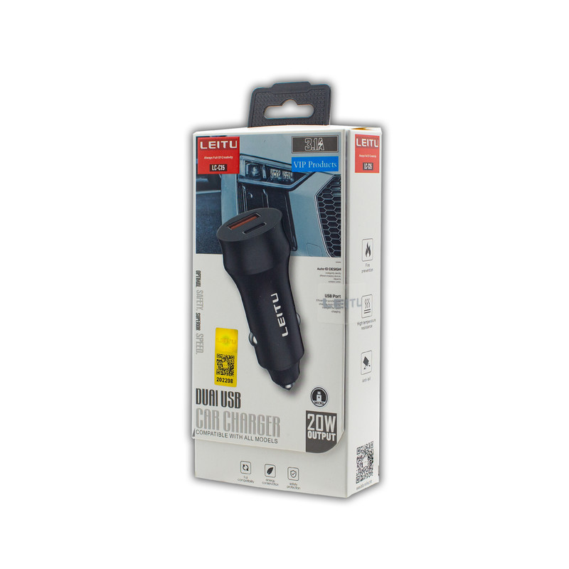 شارژر فندکی مدل LC-C15 یک شارژر با کیفیت که توسط شرکت LEITU ساخته شده است. شارژرهای فندکی یک راه رایج برای جلوگیری از تمام شدن شارژ باتری گجتهای هوشمند شما در طول روز و ساعاتی که به پریز برق دسترسی ندارید، محسوب میشوند. شما با استفاده از یک شارژر فندکی میتوانید باتری گوشیهای موبایل، دوربین دیجیتال، موزیک پلیر و دیگر دستگاههای از این قبیل خود را داخل خودرو، بدون نیاز به استفاده از پریز برق، شارژ کنید. شرکت لیتو این شارژر را با وزنی معادل 50 گرم طراحی کرده است. روی سطح این شارژر 2 درگاه خروجی USB و USB-C تعبیه شده که شدتجریان خروجی در آنها 3.1 آمپر است. توان خروجی این شارژر 20 وات بوده و میتواند ابزار دیجیتالی شما را به صورت فوق سریع شارژکنند. این محصول با توجه به مجهز بودن به استانداردهای PD, QC میتواند انواع گوشیهای موبایل و تبلت را هم بهراحتی شارژ کند. ولتاژ ورودی در این محصول 12 تا 24 ولت است. پس برای استفاده از آن کافی است شارژر را بهطور مستقیم به درگاه فندک داخل خودرو متصل کنیدبه همراه این محصول یک کابل تبدیل تایپ سی هم ارائه شده است که طول آن برابر با 1 متر است.