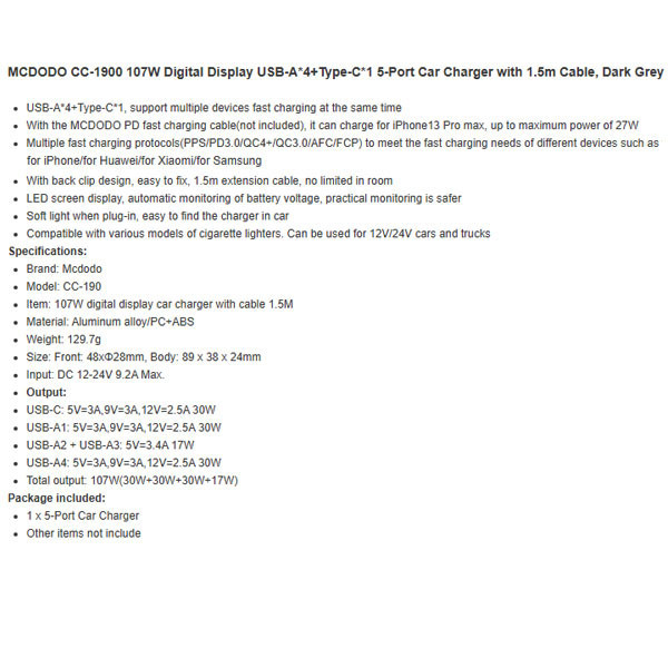 با کابل شارژ سریع MCDODO PD (شامل نمی شود)، می تواند برای iPhone13 Pro max، حداکثر توان 27 وات شارژ شود.
