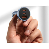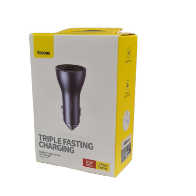 بدنه شارژر خودروی CCJDZ65-UC بیسوس را ترکیبی از آلیاژ آلومینیوم، ABS و پلیکربنات نسوز تشکیل داده و این مواد مقاومت آن را در برابر ضربه و آسیب و حرارت تضمین میکنند. در عین سادگی بسیار زیبا بوده و ابعادی برابر با 34x67 میلیمتر دارد وزن آن فقط حدود 39 گرم است. نواری از چراغ LED روی بدنه آن به چشم میخورد که علاوه بر زیبایی در استفاده راحت آن هنگام تاریکی شب را هم برای شما آسان کرده است شارژر فندکی خودرو بهترین ابزار شارژر موبایل برای افرادی اس ت که بیشتر اوقات خود را در خودروهایشان یا بیرون از منزل به سر میبرند. نمونهای از آنها هم با نام Baseus Golden Contactor Pro 65w توسط کمپانی بیسوس تولید شده و بسیار باکیفیت است. ایسی تعبیه شده درون شارژر خودرو به خوبی از پس محافظت از باتری درآمده و از آن در برابر آسیبهای همچون ولتاژ بالا، جریان بیش از حد، اضافه بار، ولتاژ الکترواستاتیک، اتصال کوتاه و گرمای بیش از حد محافظت میکند. درنظر گرفتن دو پورت Type-C و یک درگاه USB دیگر ویژگی شارژر فندکی baseus بوده و امکان اتصال همزمان سه دستگاه را برایتان فراهم کرده است. از فناوری شارژ سریع AFC (شارژ سریع تطبیقی سامسونگ)، FCP (پروتکل شارژ سریع هواوی)، SCP (پروتکل سوپرشارژ هواوی) پشتیبانی میکند و در مدت کوتاهی به شارژ باتری دستگاهیتان میپردازد.
