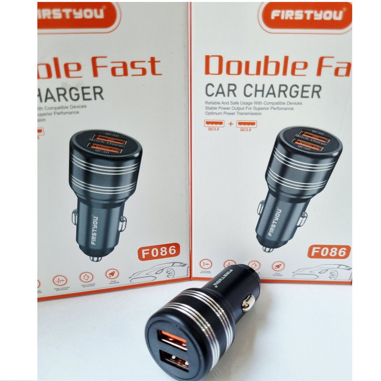 آداپتور شارژر فندکی مدل اف086 از جمله محصولات تولید شده توسط شرکت FIRST YOU است که از دو پورت QC3 دبل فست شارژ برخوردار است. با کمک این فندکی شرکت معتبر فرست یو می توانید بدون آسیب به باطری گوشی و بدون فشار به برق اتومبیل موبایل و تبلت خود را شارژ کنید. این آداپتور مناسب گوشی هایی است که از قابلیت شارژ سریع پشتیبانی می کنند.