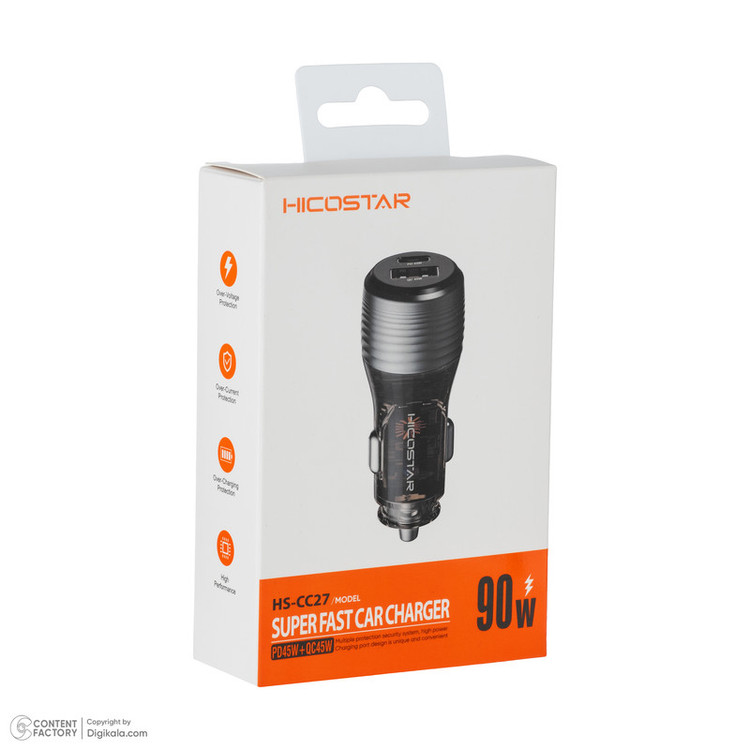شارژر فندکی 90 وات دو پورت هایکواستار مدل HS-CC27