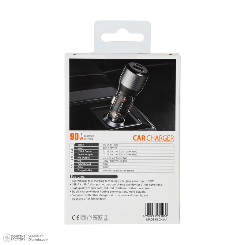 شارژر فندکی 90 وات دو پورت هایکواستار مدل HS-CC27