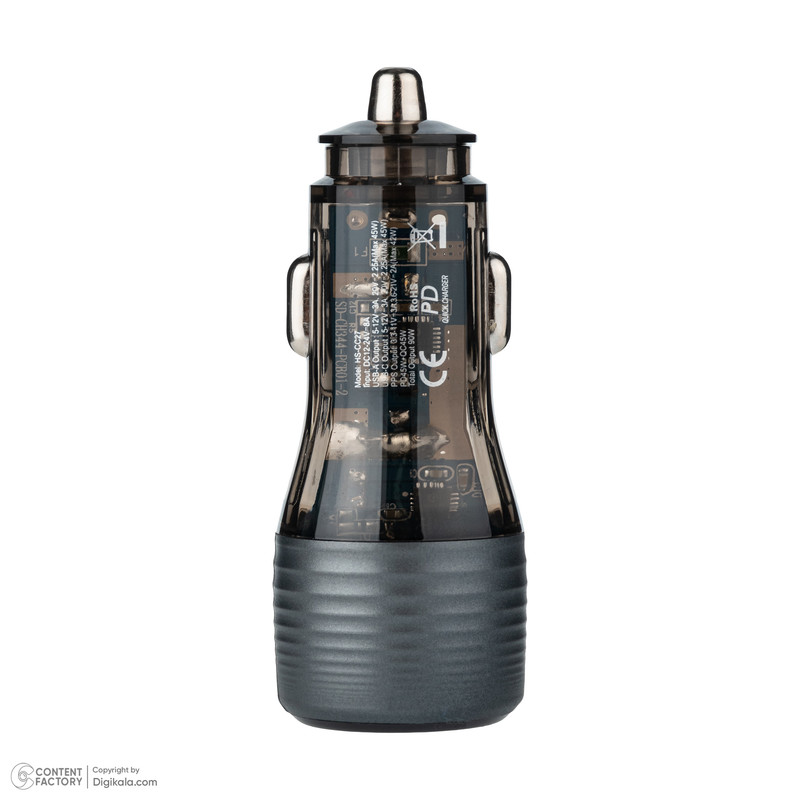 طراحی بدنه این شارژر از جنس باکیفیت و مقاوم ساخته شده و ظاهر شفاف و مدرن آن، جلوهای خاص به فضای داخلی خودرو میبخشد. دو پورت خروجی USB یکی تایپسی و دیگری USB-Aبه شما این امکان را میدهد که بهصورت همزمان دو دستگاه رابدون کاهش سرعت یا توان خروجی شارژ کنید.