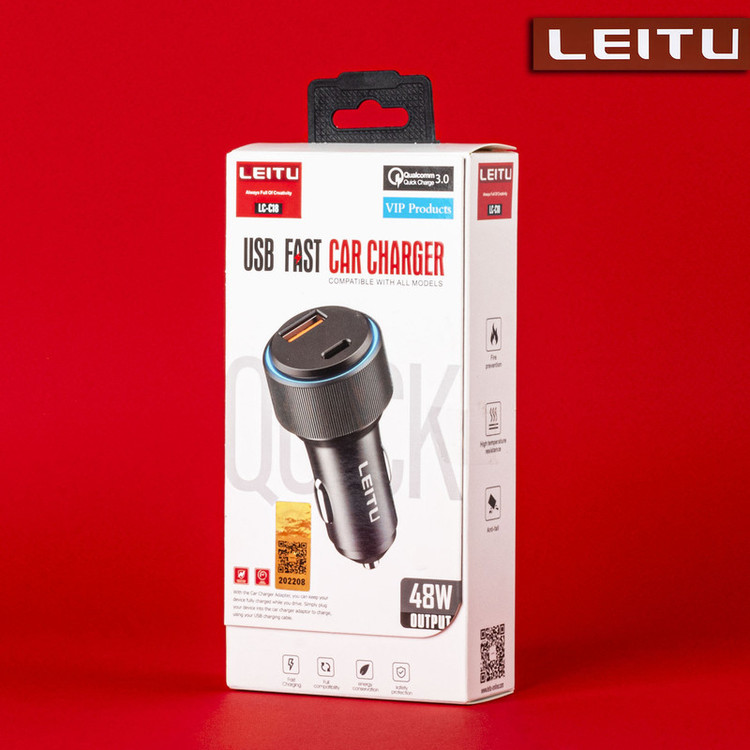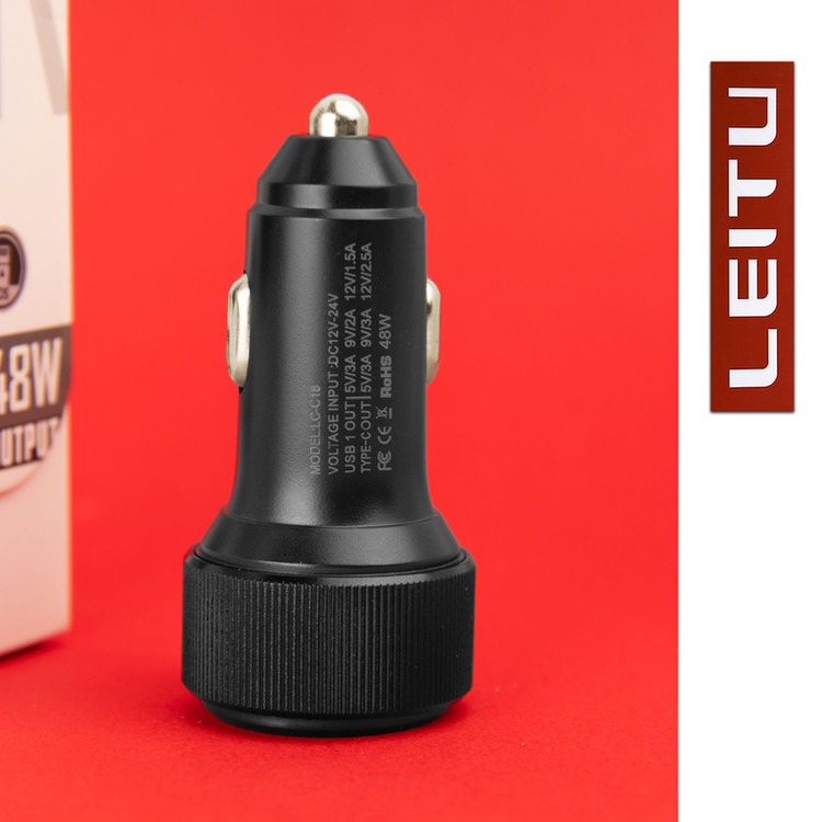 شارژر فندکی مدل LC-C18 یک شارژر با کیفیت که توسط شرکت LEITU ساخته شده است. شارژرهای فندکی یک راه رایج برای جلوگیری از تمام شدن شارژ باتری گجتهای هوشمند شما در طول روز و ساعاتی که به پریز برق دسترسی ندارید، محسوب میشوند. شما با استفاده از یک شارژر فندکی میتوانید باتری گوشیهای موبایل، دوربین دیجیتال، موزیک پلیر و دیگر دستگاههای از این قبیل خود را داخل خودرو، بدون نیاز به استفاده از پریز برق، شارژ کنید. شرکت لیتو این شارژر را با وزنی معادل 30 گرم طراحی کرده است. روی سطح این شارژر 2 درگاه خروجی USB و USB-C تعبیه شده که شدتجریان خروجی در آنها 3 آمپر است. توان خروجی این شارژر 48 وات بوده و میتواند ابزار دیجیتالی شما را به صورت فوق سریع شارژکنند. این محصول با توجه به مجهز بودن به استانداردهای PD, QC میتواند انواع گوشیهای موبایل و تبلت را هم بهراحتی شارژ کند. ولتاژ ورودی در این محصول 12 تا 24 ولت است. پس برای استفاده از آن کافی است شارژر را بهطور مستقیم به درگاه فندک داخل خودرو متصل کنید.به همراه این محصول یک کابل تبدیل لایتنینگ هم ارائه شده است که طول آن برابر با 1 متر است.