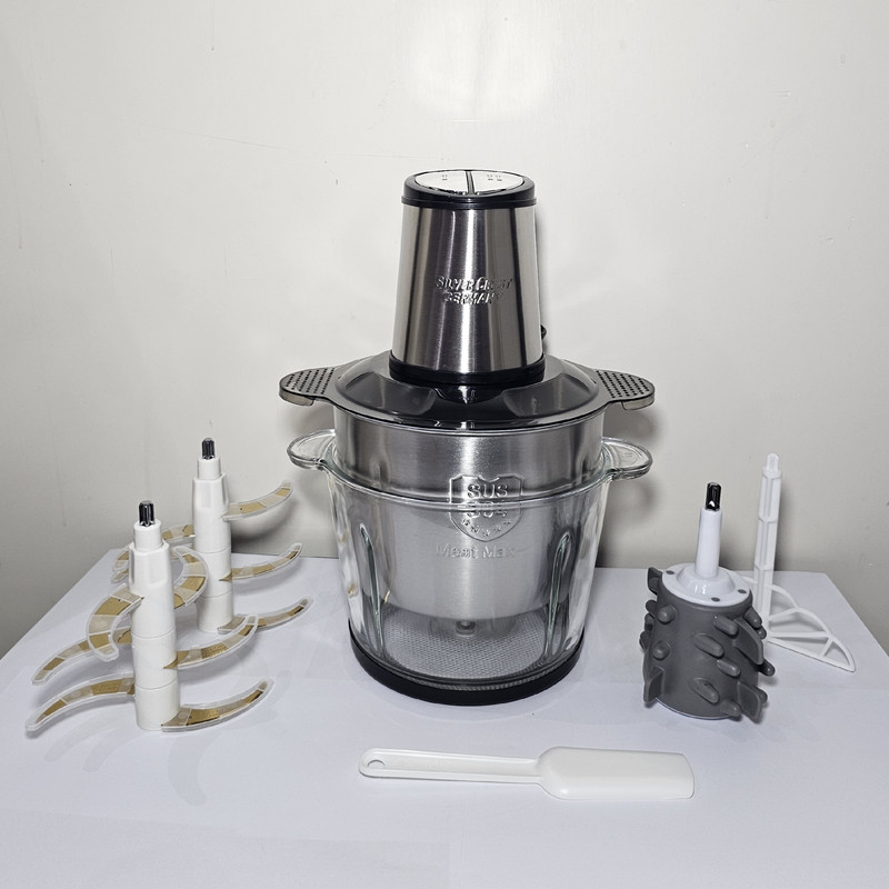 موتور و تیغه های این دستگاه به گونه ای طراحی شده است که توانایی خرد کردن انواع مواد غذایی از جمله گوشت ، مرغ ، سبزیجات ، سیب زمینی ، هویج ، صیفی جات و غیره را دارد . یک دستیار تمام عیار در آشپزخانه شما می باشد و می توانید در کمترین زمان و به آسانی هر آنچه را که لازم دارید خرد کنید . دو مخزن یکی استیل و دیگری پیرکس برای این محصول تعبیه شده است که یک ویژگی بی نظیر می باشد و این محصول را از دیگر خردکن های بازار متمایز می نماید .